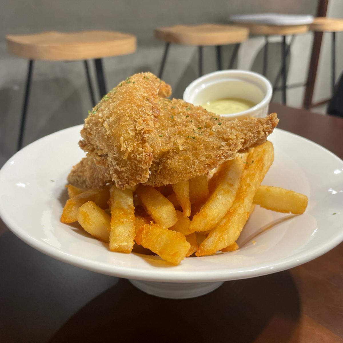 I was surprised when it was served, because the portion was quite large for an appetizer. There were two pieces of fried fish, just one for each person, and a lot of fries. It came with honey mustard sauce. The clerk said that if the sauce is not enough, you can add more. Add~