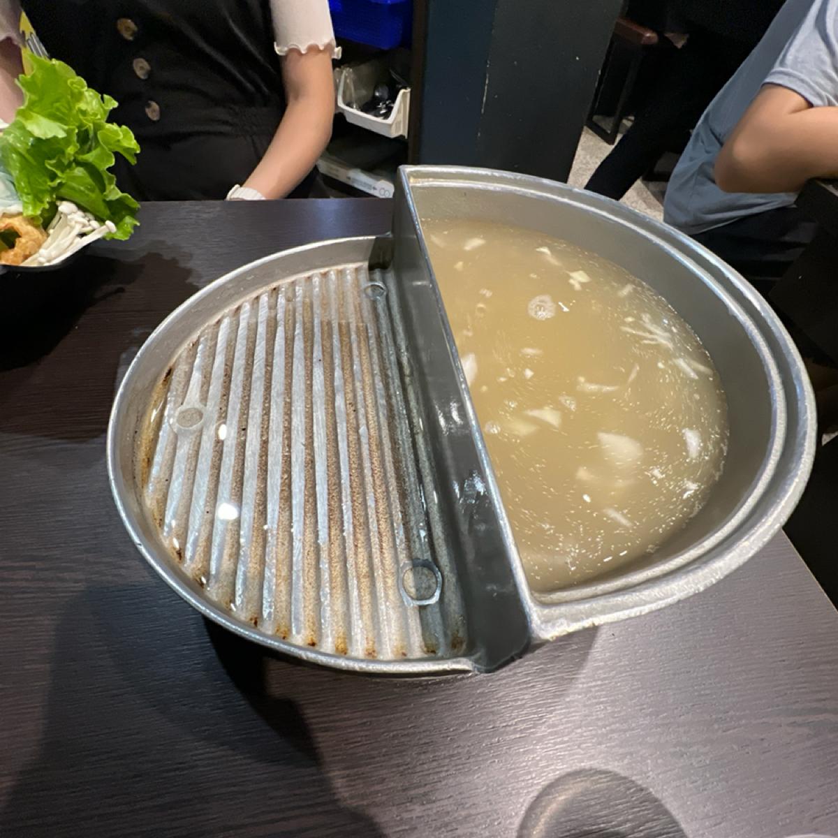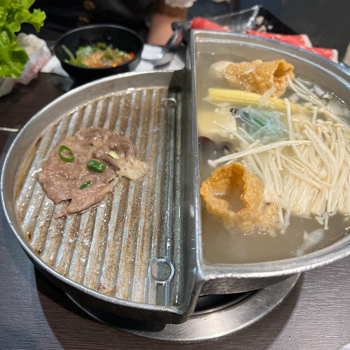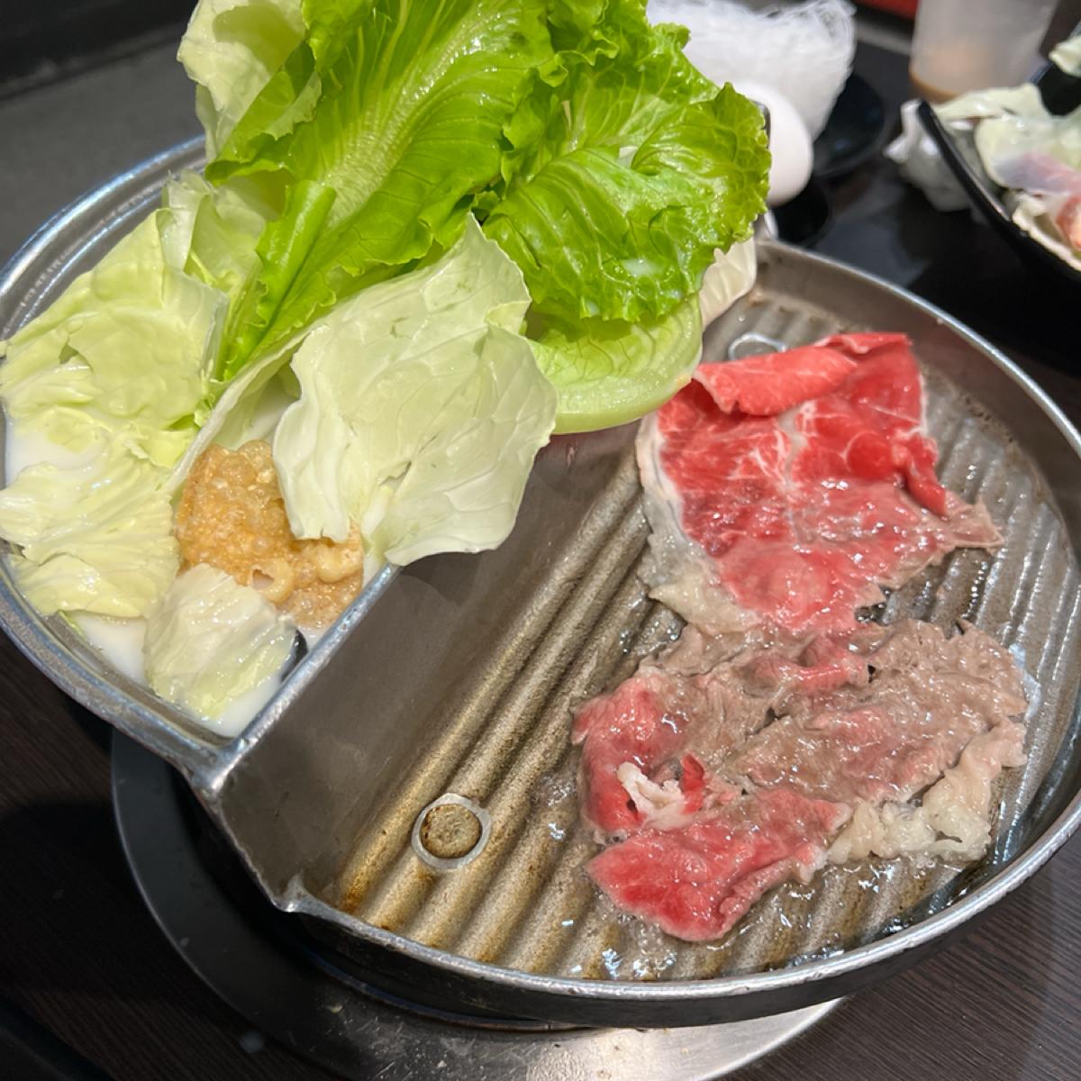 "Cheng Shi Hot Pot" is located in Dou Nan, Yunlin, and is a popular hot pot restaurant in the area known for its dual cooking method of grilling and boiling, as well as its good quality meat. There are a variety of small hot pot options here, with the signature milk pot being particularly favored. I personally enjoy ordering the milk broth, which has a rich, creamy flavor that complements both beef and vegetables very well. The option of dual cooking allows you to enjoy the rich broth while also experiencing the aroma of grilling, satisfying two textures at once.