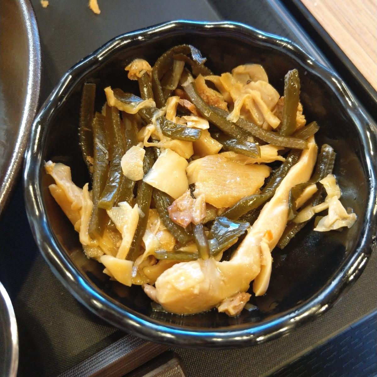 Side Dishes: The cold dishes of bamboo shoots and kelp are delicious, but unfortunately, you can't get refills on these; otherwise, I could eat two more bowls with rice.