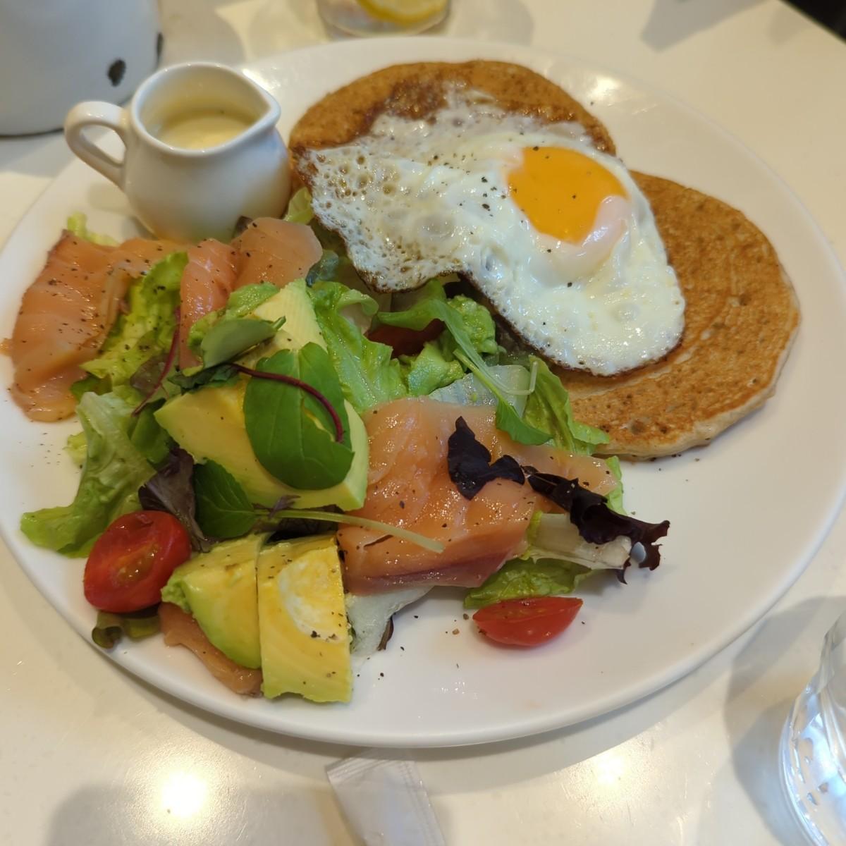 Really nice vibes and almost always crowded. I passed my many times in various locations and was always tempted by the large pictures of their souffle pancake. This one has nice window seats with a nice view and a small wooden ledge which our toddler liked to crawl off and on to look outside.
