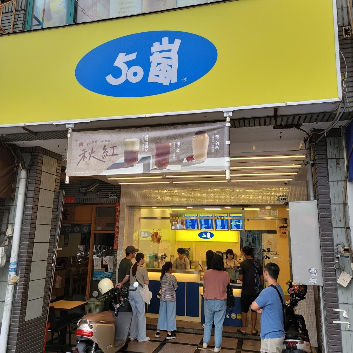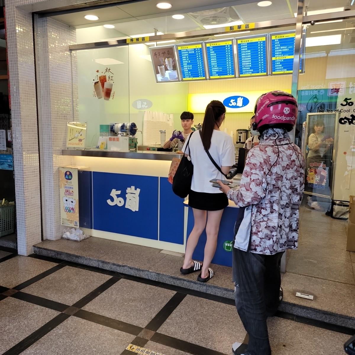 This area is simply a food haven, with many beverage shops and restaurants to choose from. This branch of Chain 50 Lan does not provide seating for drink waiting; you can only stand under the eaves while waiting. The decor features the standard blue and yellow color scheme, with a glass partition to separate the air conditioning and leave a window for ordering and pickup. There are many payment options available, supporting various mobile payment methods.