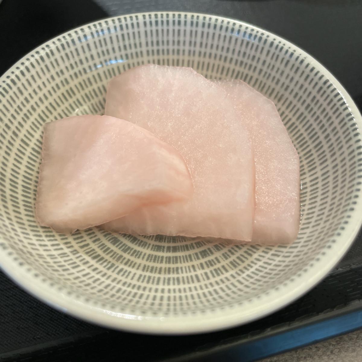 The black pork itself is tender and not too dry, but the outer skin is average. The rice is well-cooked using Chishang rice, it's neither too wet nor too dry and has a nice chewy texture. The side dish of spinach lacks seasoning, and the pickled radish is neither too salty nor too sour, which is quite good. The miso soup is a bit salty and has few ingredients. The dessert is a standard deep-fried peanut mochi.