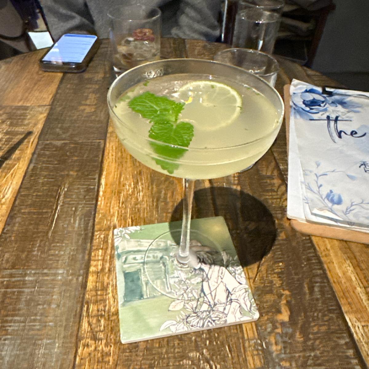The base is lime gin, hazelnut liqueur and lemon balm. Lemon balm has a slight mint flavor, and then gin has a light lime flavor, and the taste is also sweet.