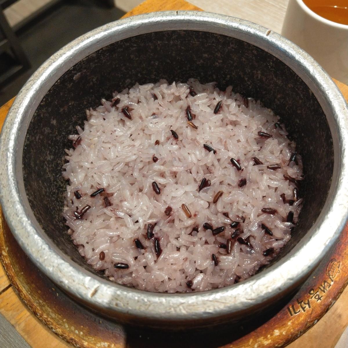 The side dish was purple rice served in a stone bowl. The temperature of the stone bowl is very high, allowing for some crispy rice at the bottom, which was nice to eat with a splash of soup or wrapped in seaweed. However, a big issue with the serving was that the tofu pot and rice were not served simultaneously. Often, the ingredients of the tofu pot would run out before the purple rice arrived, leaving a leftover bowl of rice that wasn't quite sure how to deal with (but I have a big appetite, so I finished it off with the side dishes anyway 🤣).