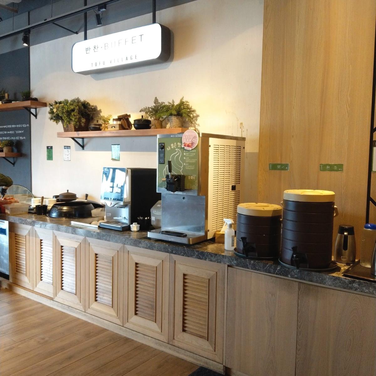 After ordering, we were first served a portion of tofu, dipping sauce, and seaweed. The meal took some time to prepare, so we could go to the self-service bar to grab 4 types of side dishes.