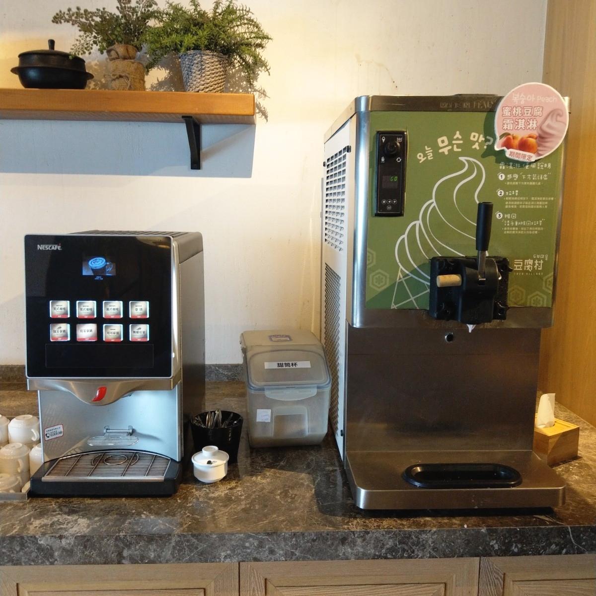 After finishing the main course, I returned to the self-service area and have to say the hot drink machine at this place is incredibly bad—so bad that it makes you question life (it seems like there isn't enough milk or sugar? In any case, I tried it several times and it just didn't work for me). However, compared to the hot drinks, the ice cream was truly amazing! Today, I had peach tofu flavor, with a delicate, creamy texture that showcased the slight sweetness of the peach and the rich flavor of the tofu. Eating a lot didn't feel guilty at all; I really recommend it! 😋