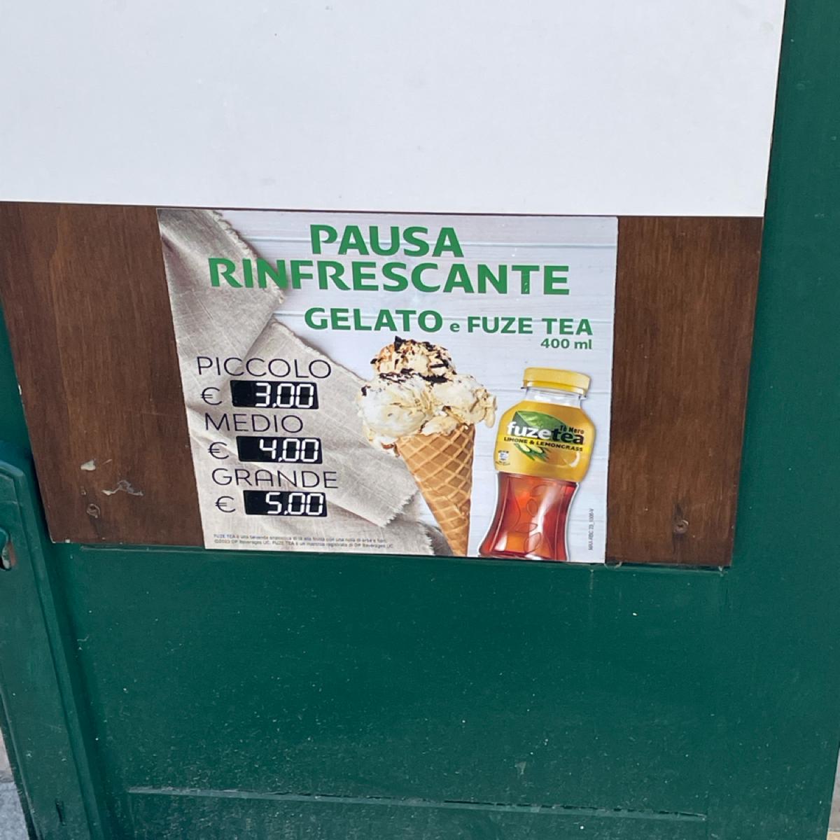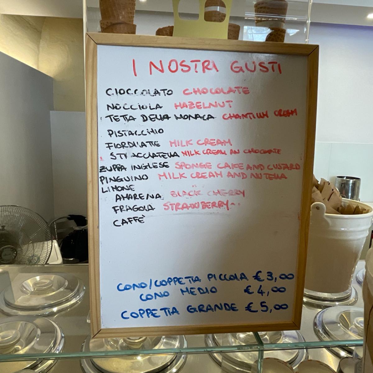 The prices for small, medium and large sizes here are €3, €4 and €5 respectively. We choose the smallest one and can only choose one flavor.