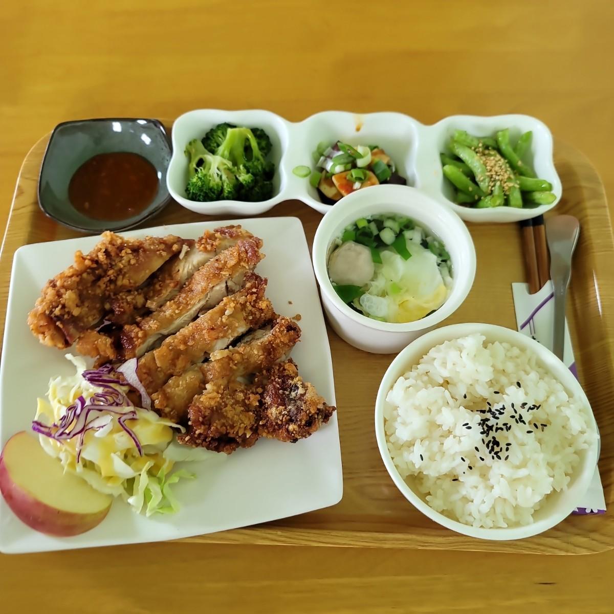 The food is up to standard. The chicken drumsticks I ordered today are freshly fried and juicy. You will be full after eating the side dishes and soup. If you have a larger appetite, you can also choose to order a set meal. There are many choices for desserts, which are also good.