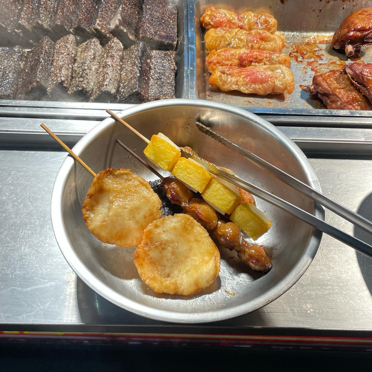 After selecting, the owner will reheat and fry them. You can wait nearby while they do this. The actual cost isn't low; eating just a few skewers can easily add up to over $100.