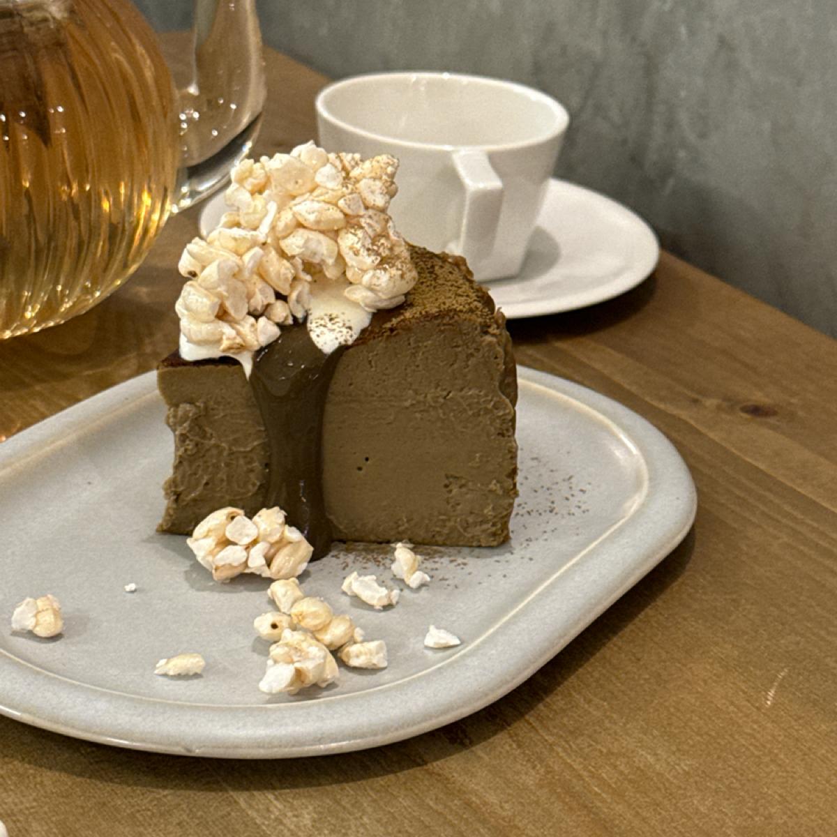 Next is the "BOOM! Roasted Rice Tea Basque." I was amazed by it – the roasted tea aroma is rich without being bitter, and the sweetness is perfectly balanced. Combined with the crispy texture of the rice puff, it offers a rich layer of flavor that is both creative and harmonious, making it a Basque that one would want to order again.
