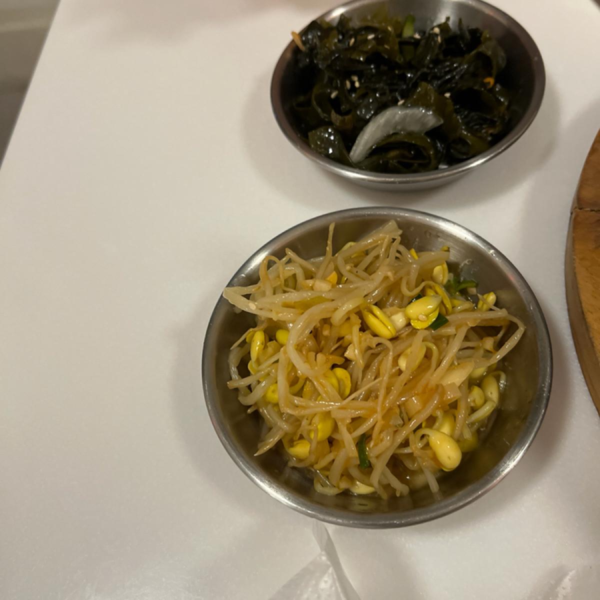 There are two plates of side dishes, which can be refilled once, just in time to wait for the meal to be made.