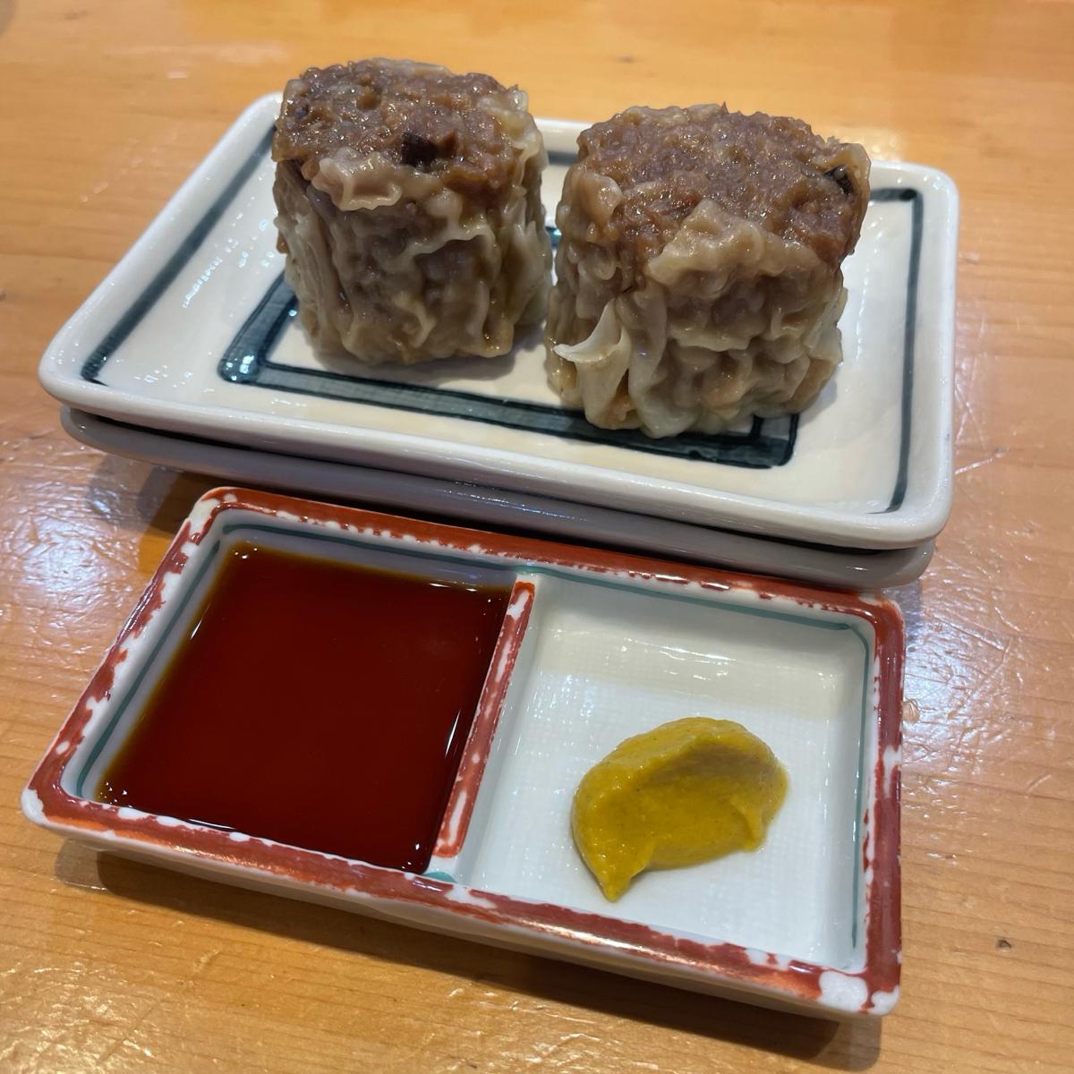 There are two pieces in total, and the shumai are quite large, filled generously. There's a nice crisp texture, but I’m not sure what it is. I highly recommend dipping it in yellow mustard for an added flavor boost.