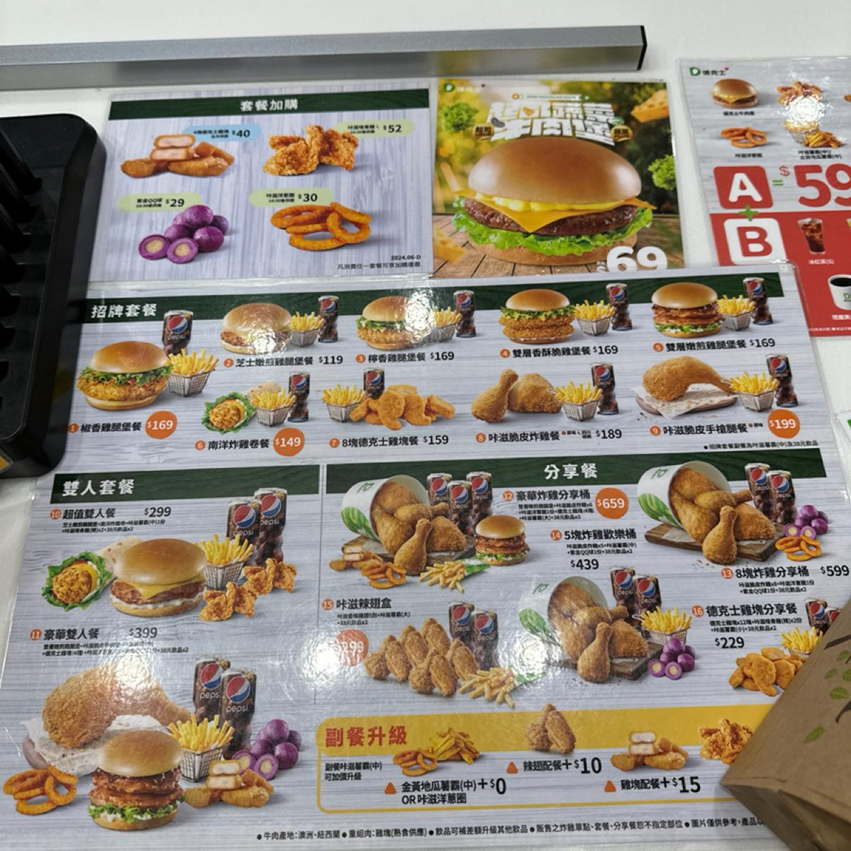 Lemon Chicken Burger Set $169 (burger + drink + medium fries) The lemon flavor is just right. The meat is also very crispy. The fries are a bit soft.