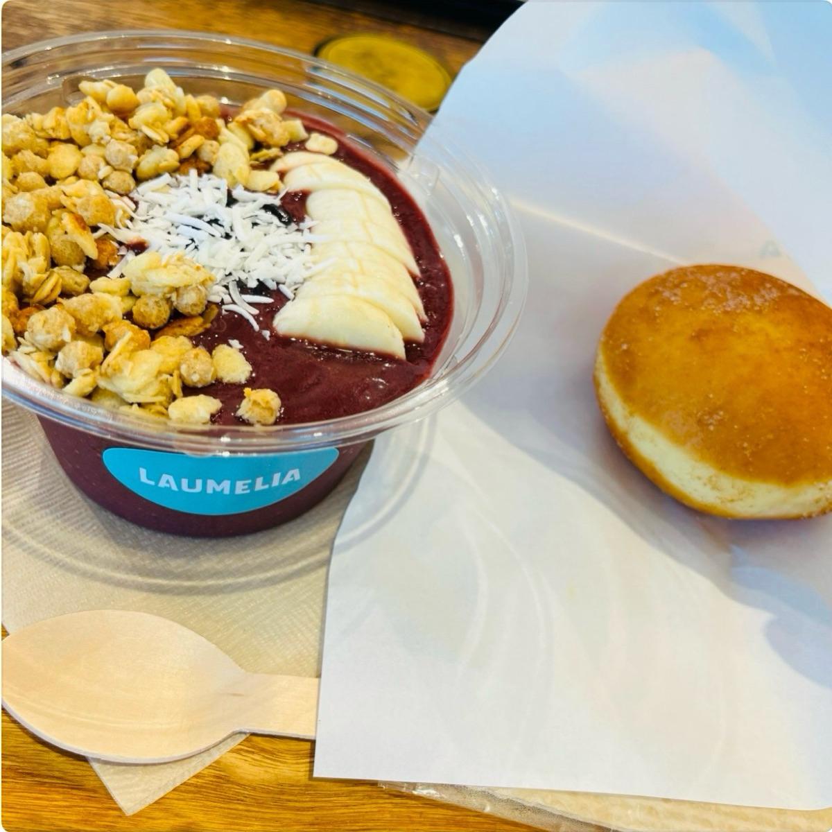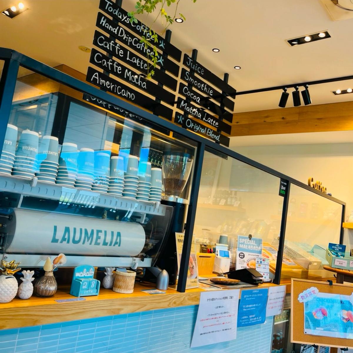 'LAUMELIA' is a café located alongside the Mercedes-Benz Urayasu showroom and offers delicious Hawaiian dishes full of quality, including "three types of hamburgers using 100% domestic beef patties," "loco moco," "cobb salad," "acai bowl," and "malasada," made with carefully selected ingredients and their original blend coffee!