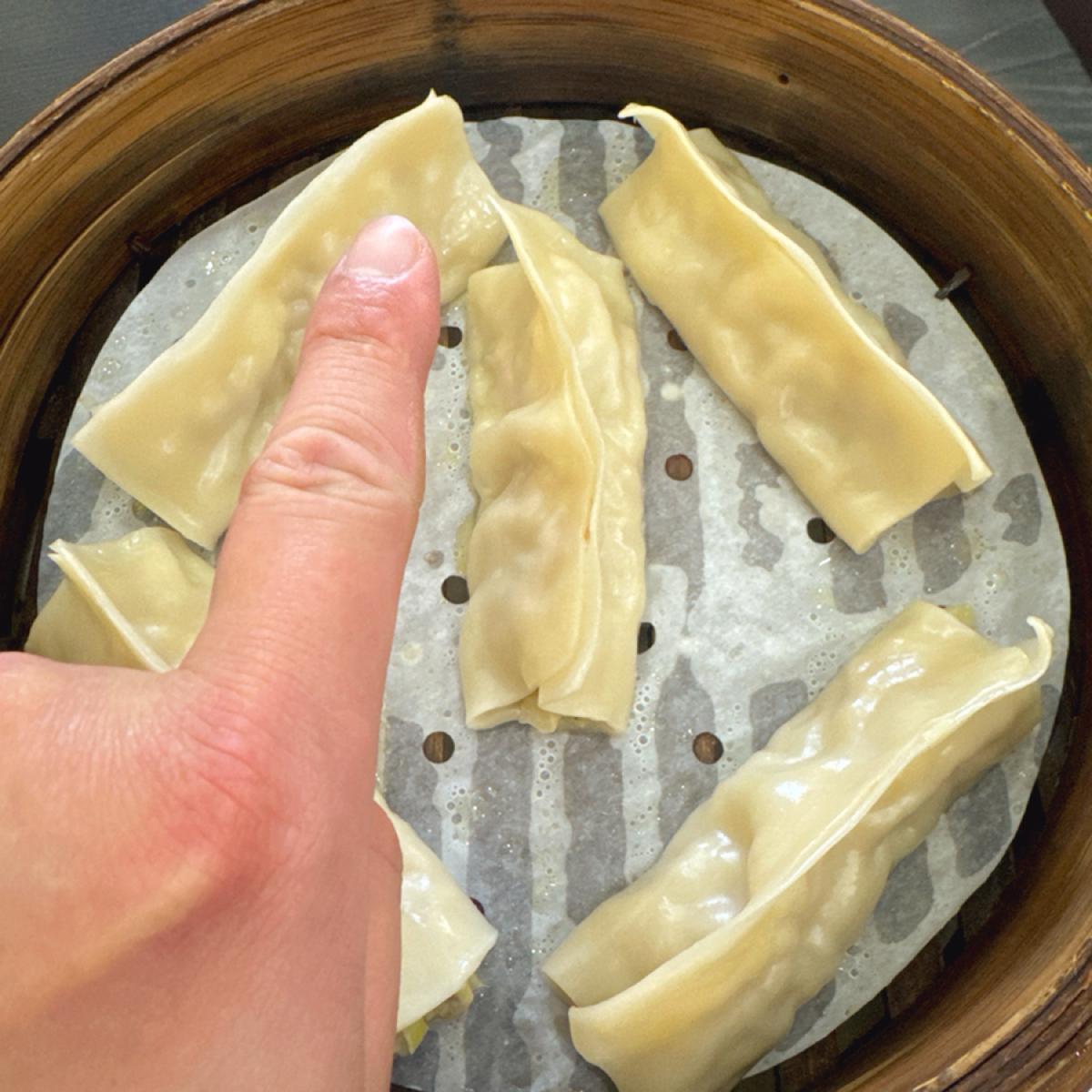The pan-fried skin is super crispy 🤩 and cooked just right. The signature filling is loaded with the aroma of scallions and has a nice crunch and sweetness from the cabbage. 👍