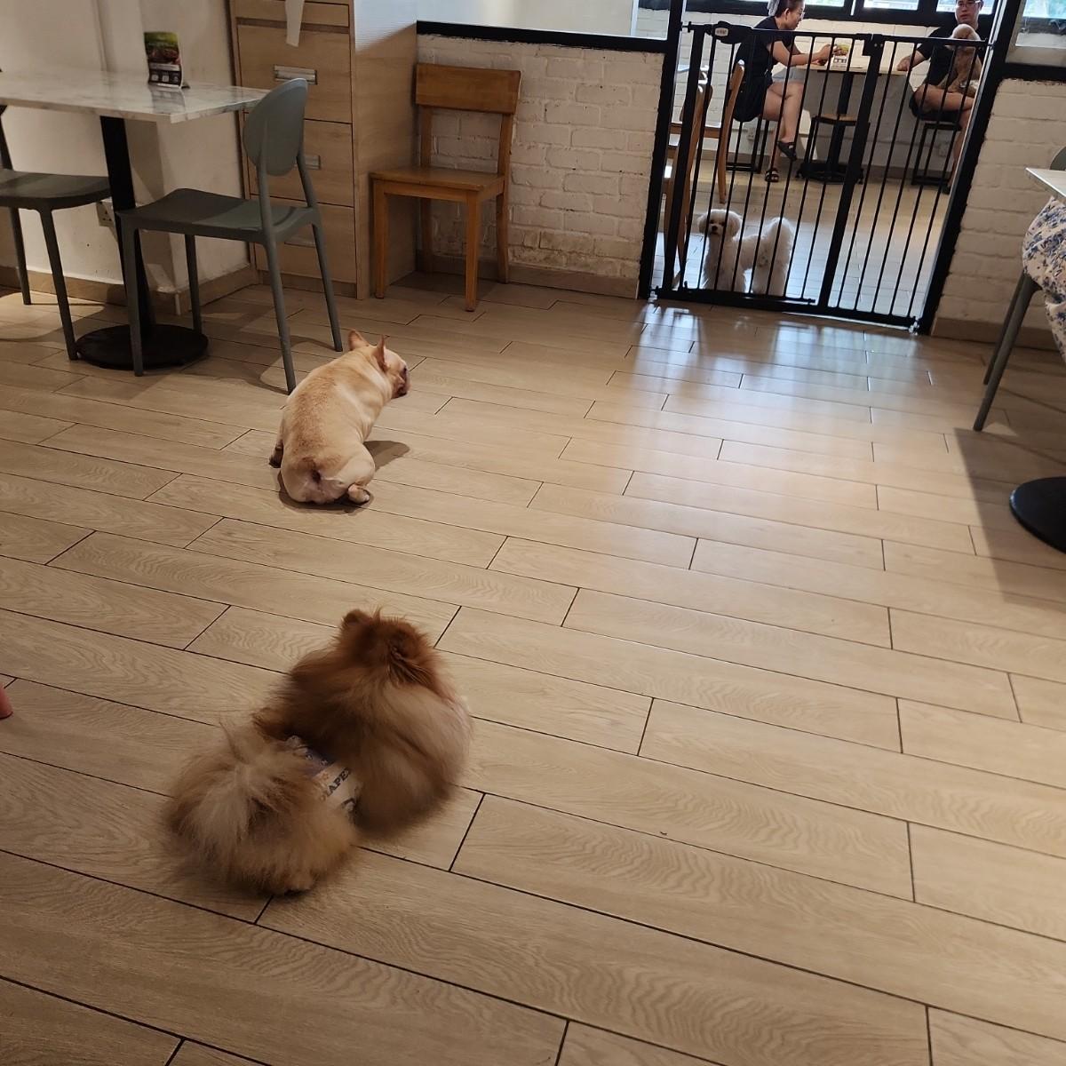 A pet cafe that is mainly for dogs. Its located on the first floor. There is no lift available so wont be suitable for people who have trouble walking up stairs. Parking can be challanging to find, however you can park in the atria mall or the multistory paying carpark and walk up.