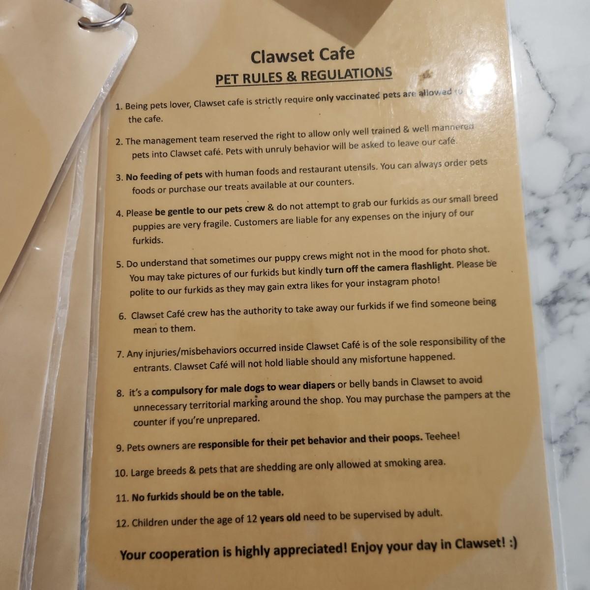 The environment was nice, though there was a bit of a dog smell when walking up the stairs. However, i couldn't really smell much while in the cafe. There were plenty of small dogs for you to play with. If you wish to feed them, you can buy some treats from the petshop there. There is no cover charge to enter, though you are expected to buy some food.