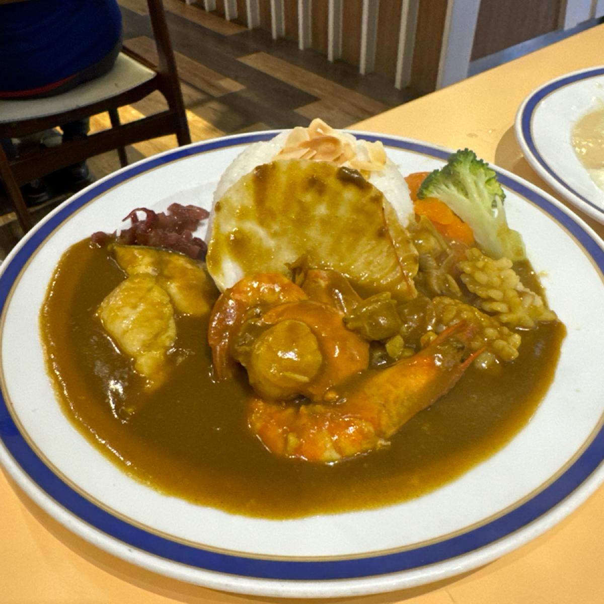 Pan-fried almond seafood curry rice NT$320 - This is a limited-time replica menu. The seafood includes two shrimps, one scallop, several clams, two carved squids, and two pieces of fish. The quality is average. Today, the sauce itself is a little spicy, but the curry tastes very sweet, which feels a bit weird. When adding the sauce, it was better to change it to medium spicy, but it just felt like sweet and spicy coexistence. It's a very classic Japanese curry taste. The sauce itself is not too salty, but it is not particularly spicy. The consistency is liquid but not watery. It is of a good standard, but the memory is relatively weak.