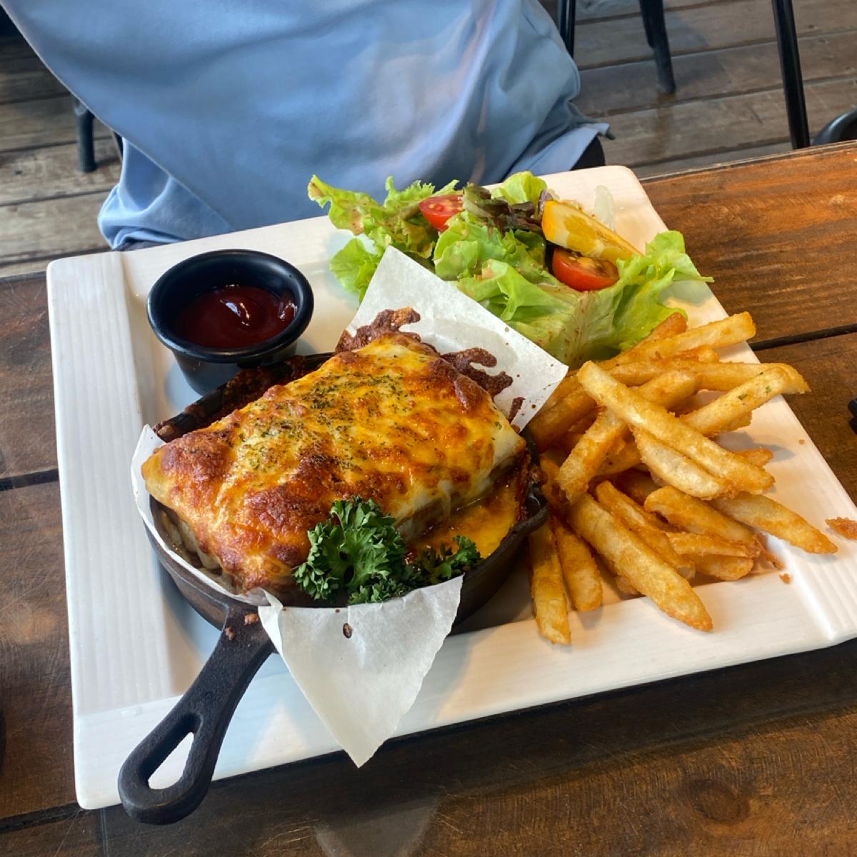 The red sauce flavor of the lasagna is quite good, and it tastes great baked. There are also side salad and fries. The added chocolate crisps are rich and slightly sweet.