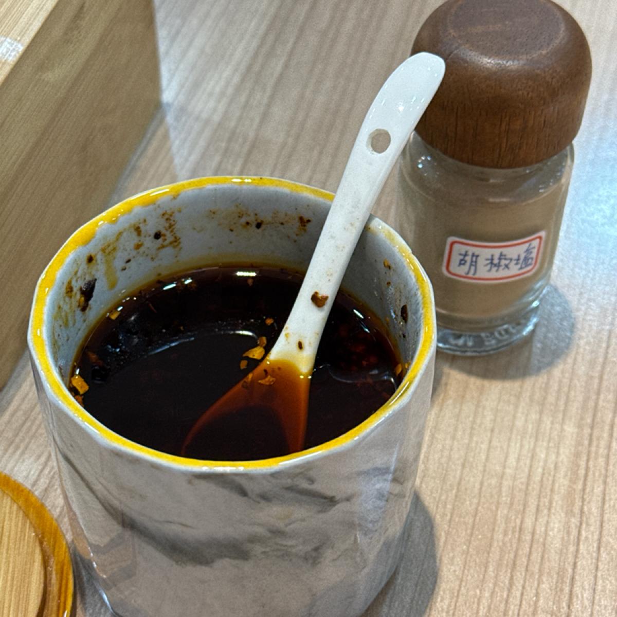 There’s chili oil on the side, which is definitely worth dipping; the aroma of Sichuan pepper is strong and slightly spicy, but very enjoyable!