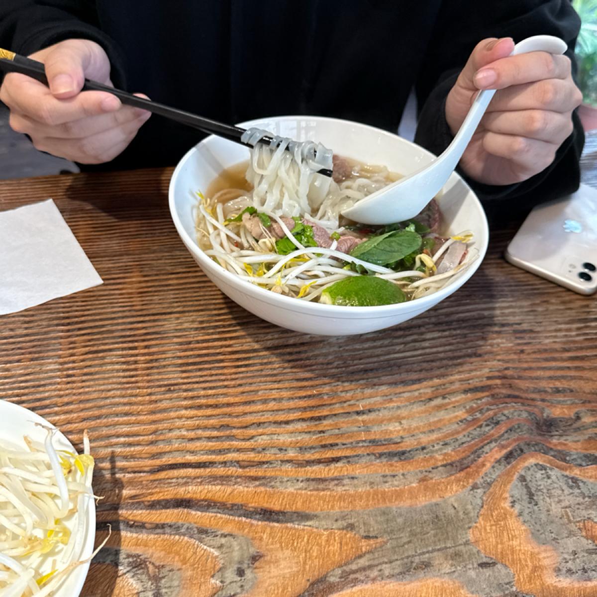 Firstly, regarding the noodles. I originally thought they would be rice noodles, but they actually used rice vermicelli. Rice vermicelli has a thinner texture and differs in its ability to absorb the broth and its overall presence compared to flat rice noodles. For those expecting wide rice noodles, this could be a bit disappointing. The noodle texture is normal but lacks elasticity and character, leading to an overall bland performance.