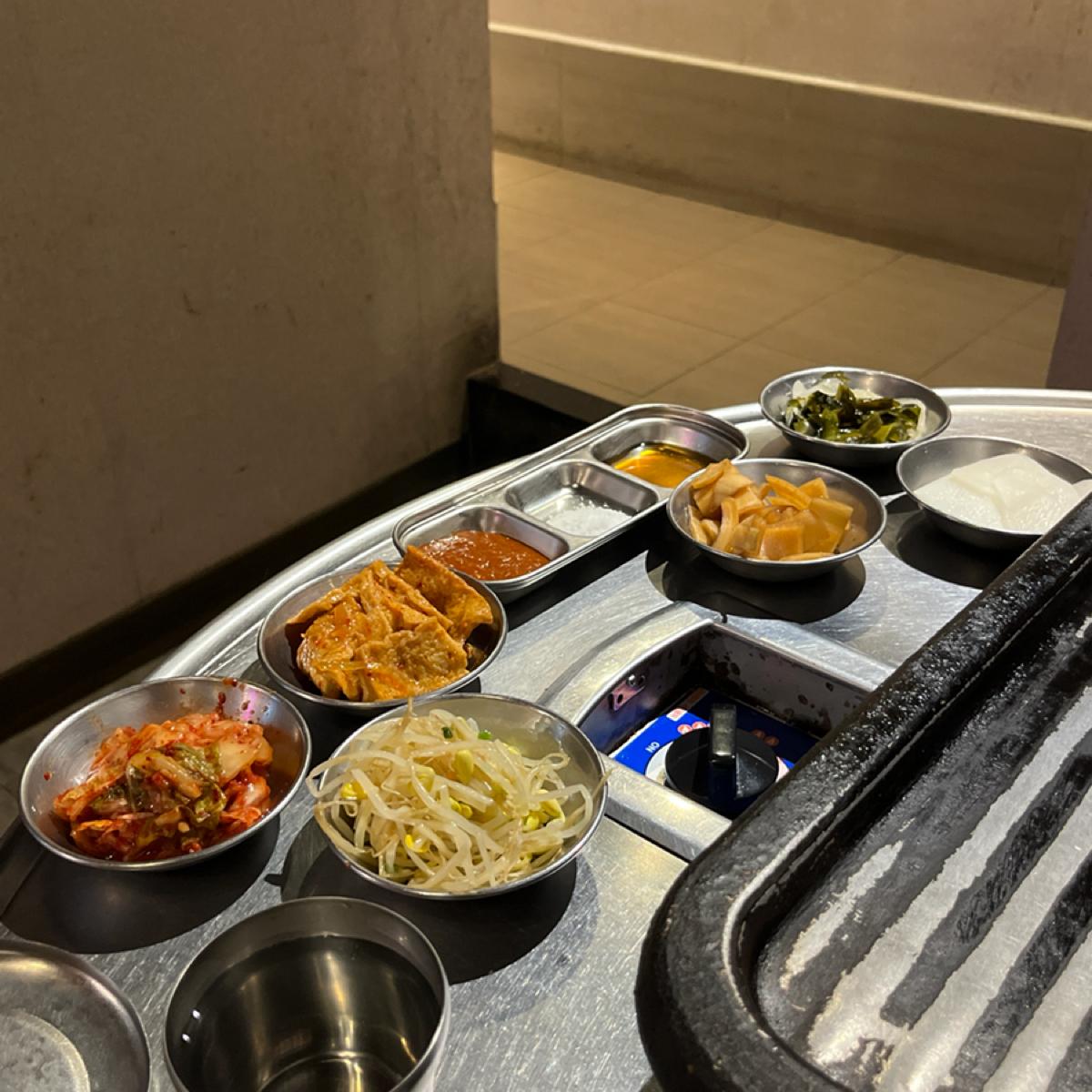 There are actually not many seats in the store, they are all small round tables, which visually cannot accommodate too many people. Because it was a bit early (around 5pm), we ordered the pork platter for $999. I personally think the portion is generous and very cost-effective! There are three kinds of meat: pork belly, plum blossom and pineapple, plus various vegetables, such as onions, potatoes, sweet potatoes, king mushrooms, etc. You can refer to the photo. The whole process of baking is done at the table, so you don’t have to do it yourself. There are also a variety of Korean side dishes with unlimited refills, and they all taste great! Paired with beer, the two of us were so full after eating it... I recommend that those who love Korean food must try it!