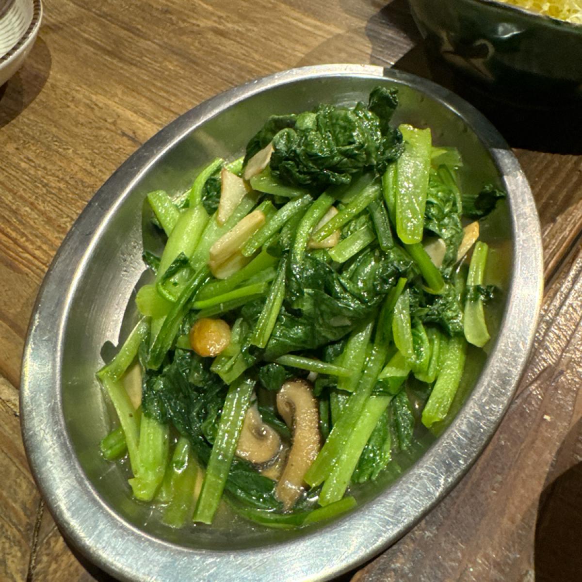 The komatatsu greens are delicious, but they are a little bit old. I feel like I would prefer them if they were stir-fried a little bit fresher.