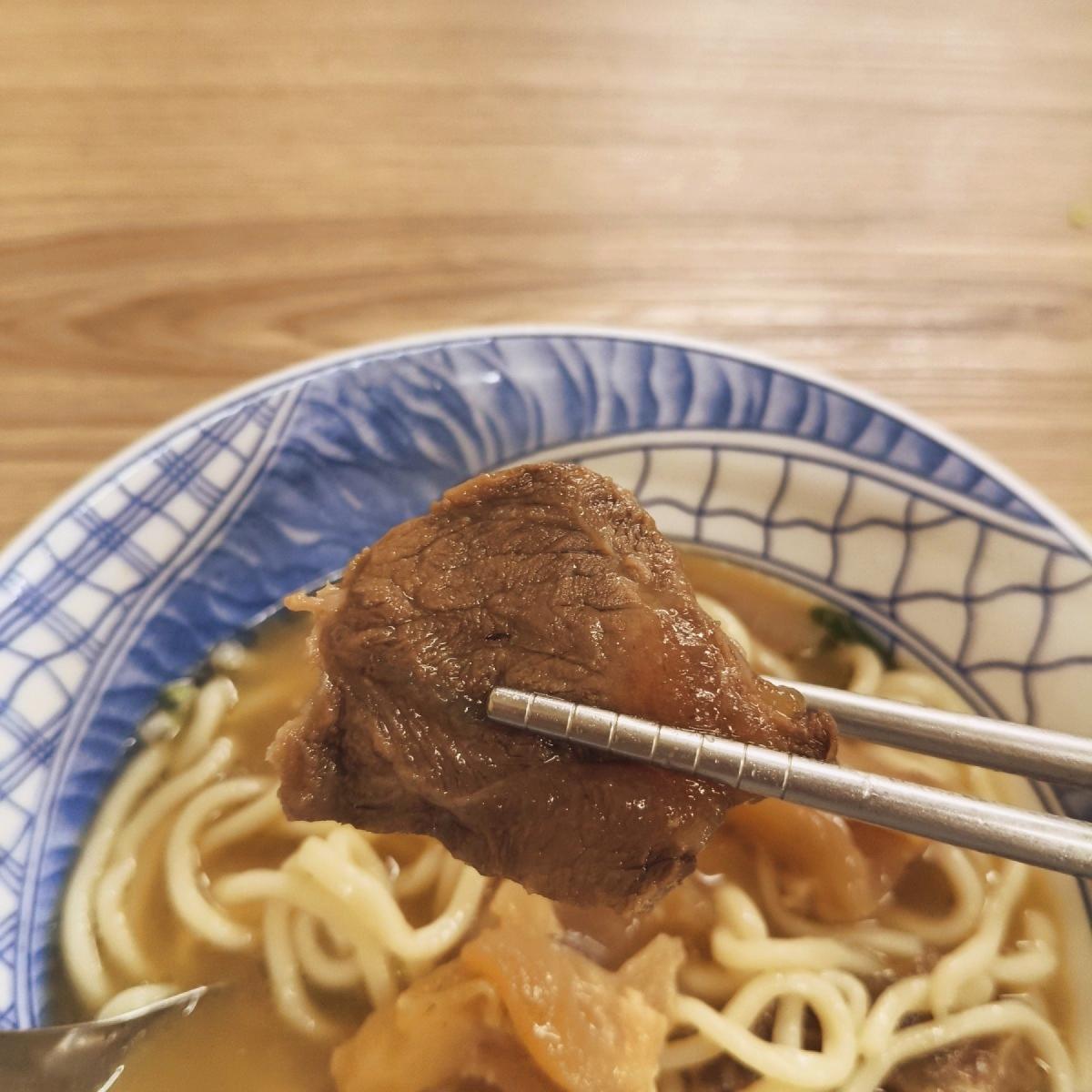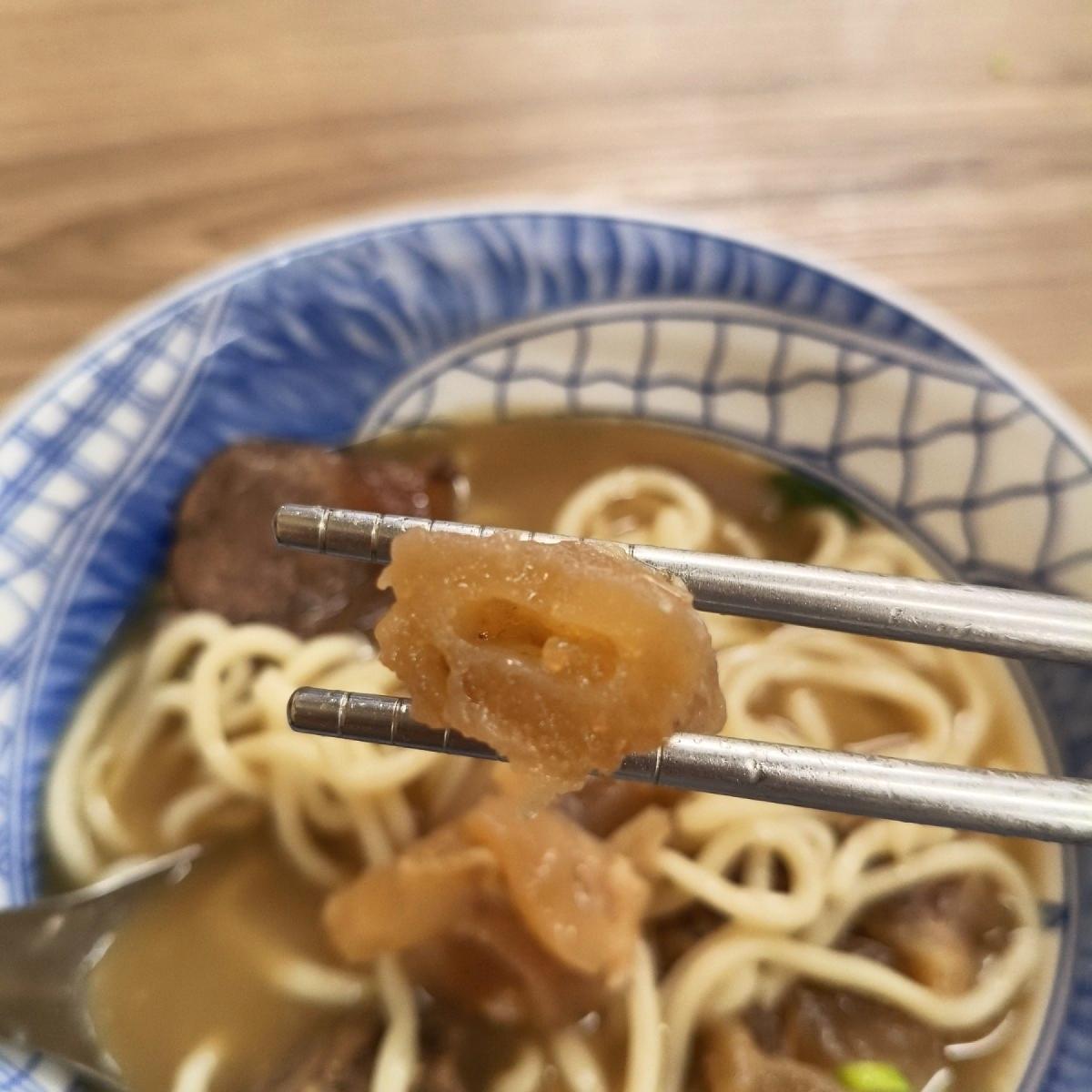 Although the price is not cheap, you can tell at first sip that the broth is special and very rich, feeling like it has been carefully simmered. The beef comes in two pieces, tender and not dry, about the size of two 50 NT dollar coins, and there are about 5 pieces of very chewy and collagen-rich beef tendon. The noodles are thick, hand-pulled, with good texture, and I've heard other customers say you can choose. The topping includes chopped green onions.