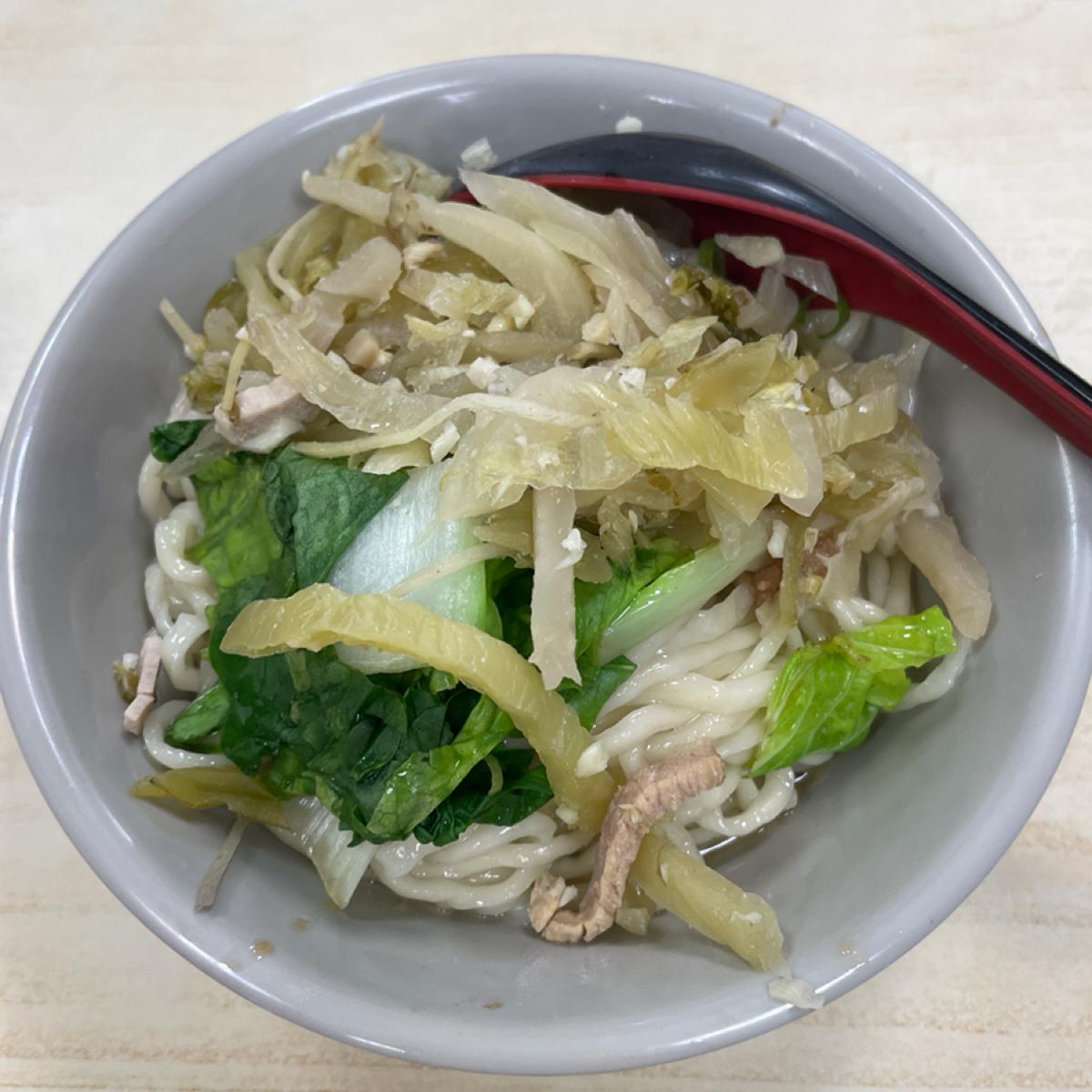 The most famous ones here are probably the beef noodles and fried pork ribs noodles. Almost every table has a plate of fried pork ribs. It looks really delicious, but I don’t want to eat fried food and beef today, so I chose a simple one. Mustard Pork Noodles