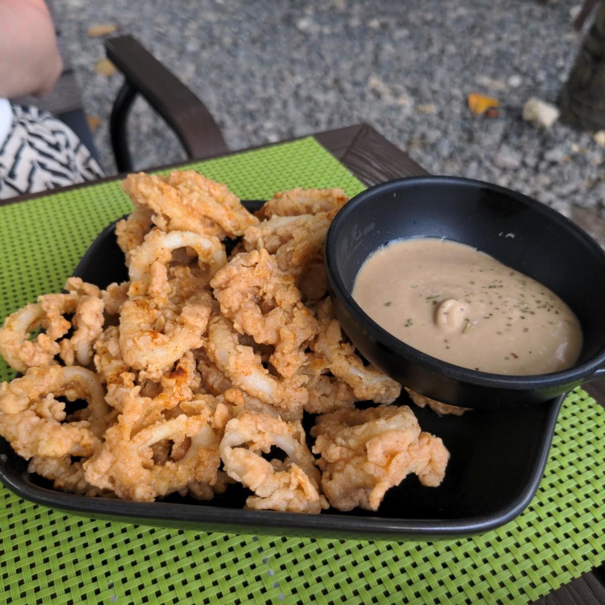 In addition to the restaurants in nearby hotels, this is one of the convenient choices on the street. The garden-style decoration is very resort-style. The meals are Italian with Filipino taste, including pizza and seafood appetizers. This time I only ordered simple ones. Pizza, fried flower sticks, and a cup of mango smoothie are must-haves when visiting Nanyang islands. The pizza is mainly pancakes, with a strong flour flavor and a lighter taste. You can add some chili sauce to enhance the flavor. The fried flower sticks are harder and have a thicker texture, so I’m used to it. The Taiwanese taste is more picky, and the flowers are fresh. The mangoes here are delicious and sweet.