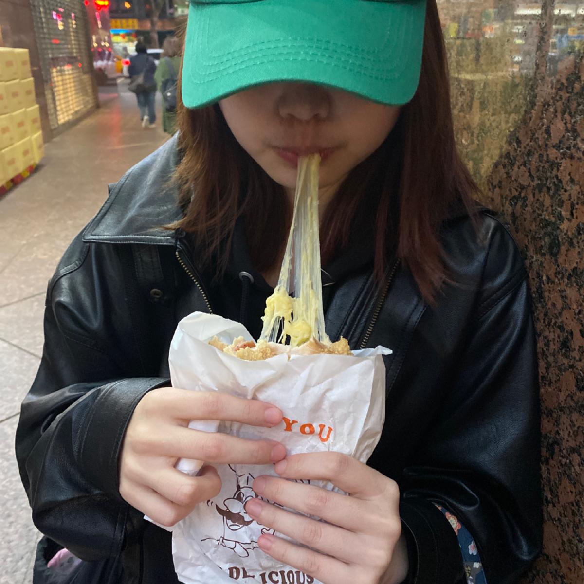 I kept pulling the thread while eating it hot (¯︶¯)