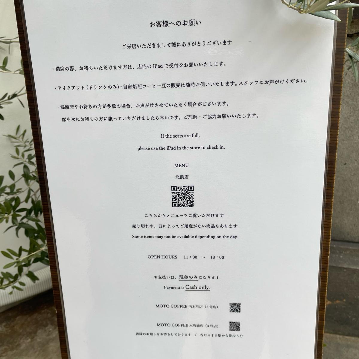 “MOTO COFFEE” is a very popular cafe in the Kitahama area. It's conveniently located right across from the exit of Kitahama Station. The overall decor is fresh, using wooden textures and a lot of white in its design. The café has three floors, but the indoor space isn’t very large.