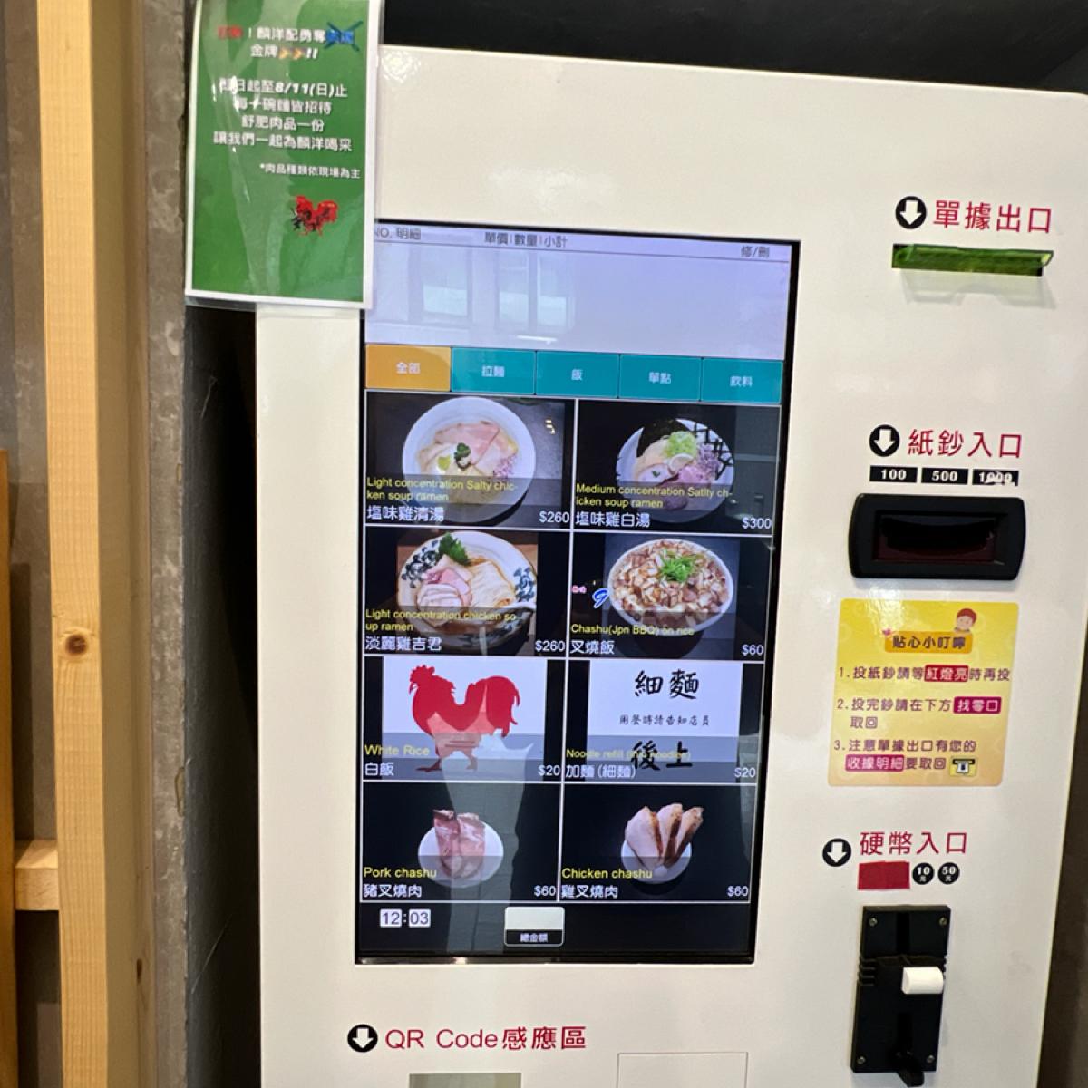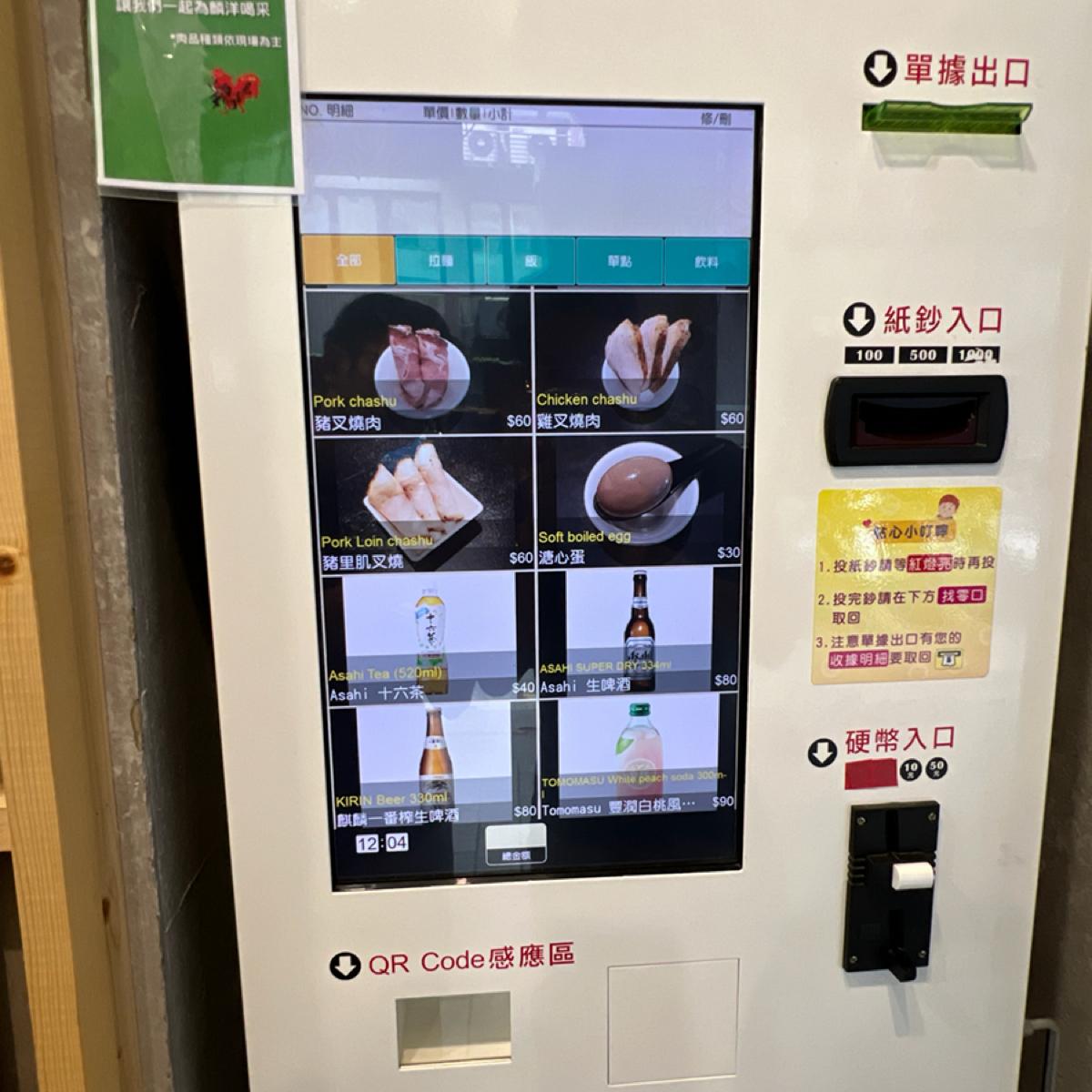 The decor follows a Japanese ramen style, with walls made of cement wall-patterned wooden boards. Just like most Japanese ramen shops, you place your order at the machine outside before entering, although the staff will come out to introduce the menu. The shop can accommodate about 20 people, the air conditioning is moderately strong, and there are no restrooms.