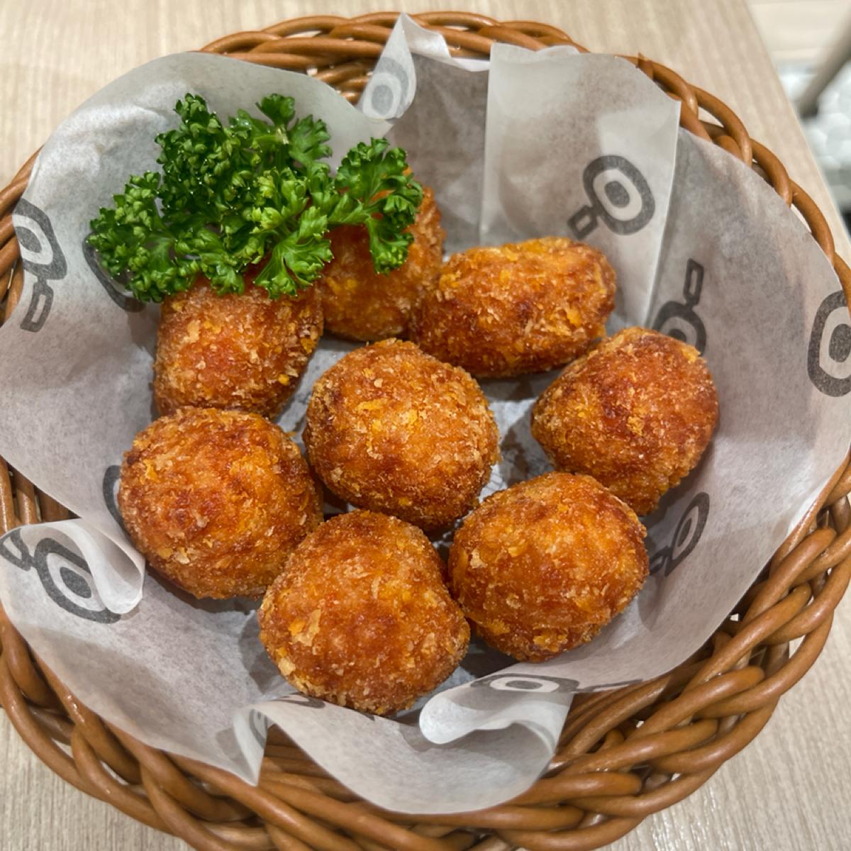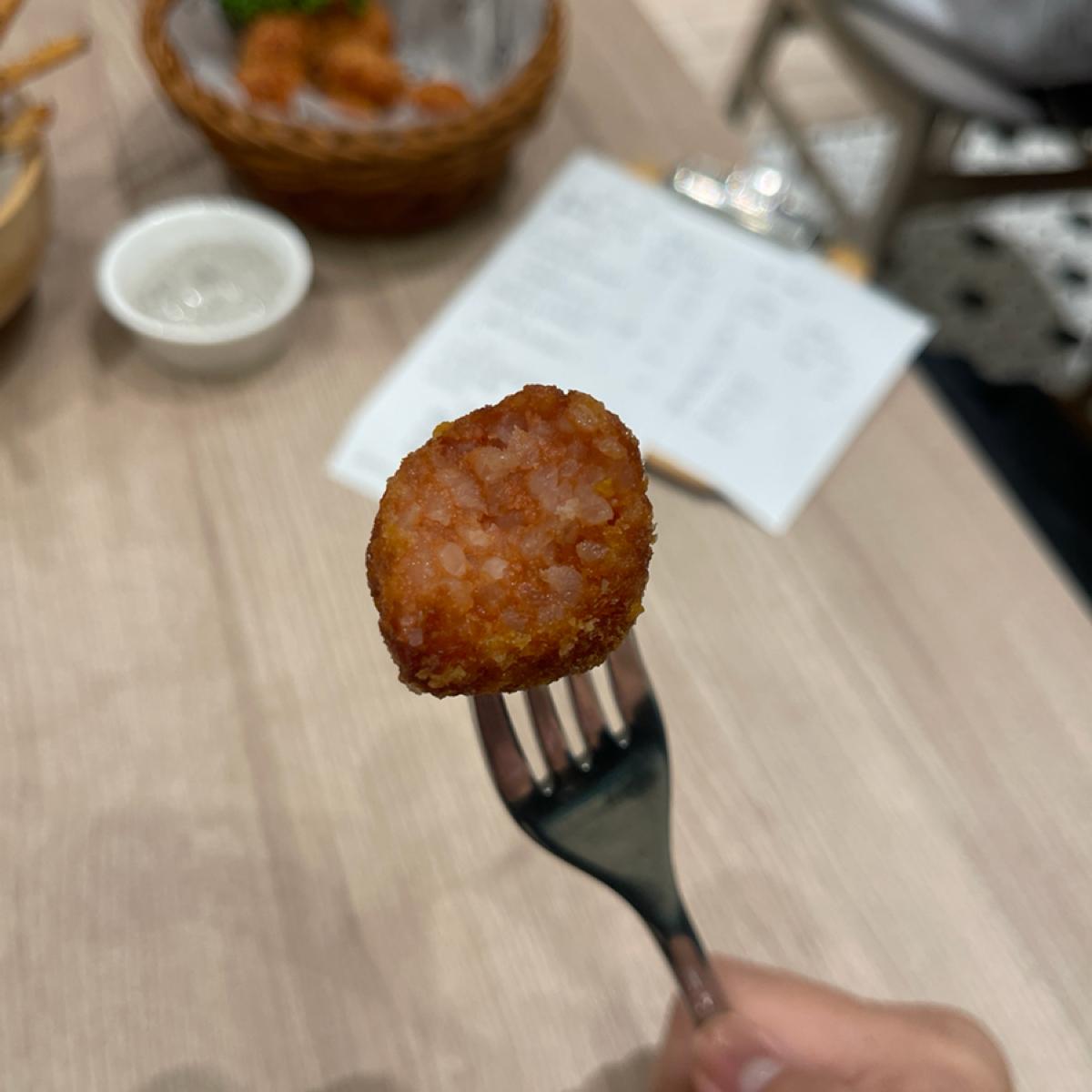 Tastes like mini versions of fried rice wrapped in batter and deep-fried. Although they look small, you'll feel full after finishing them!