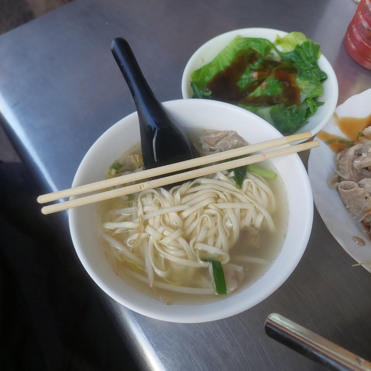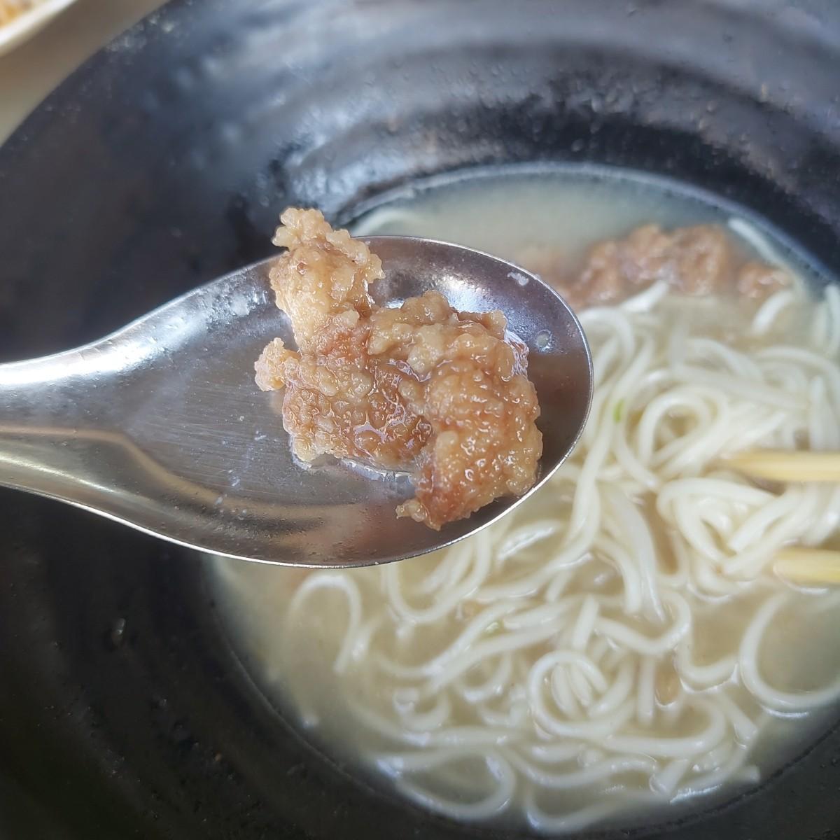 The noodles of crispy pork ribs noodles are different from those of big bone meat noodles. The big bone meat noodles use a relatively wide noodle to catch the soup, while the crispy pork ribs noodles use cylindrical thin noodles to give diners a different taste.