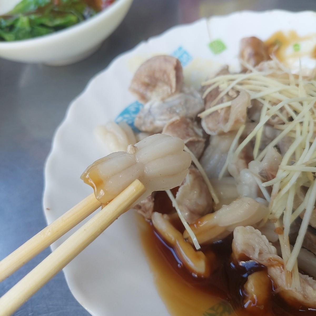 The side dishes are served in a large plate at one go. The noodles and liver are both properly prepared. The rich meaty flavor and unique chewy texture are accompanied by shredded ginger and a little soy sauce, which is perfect.