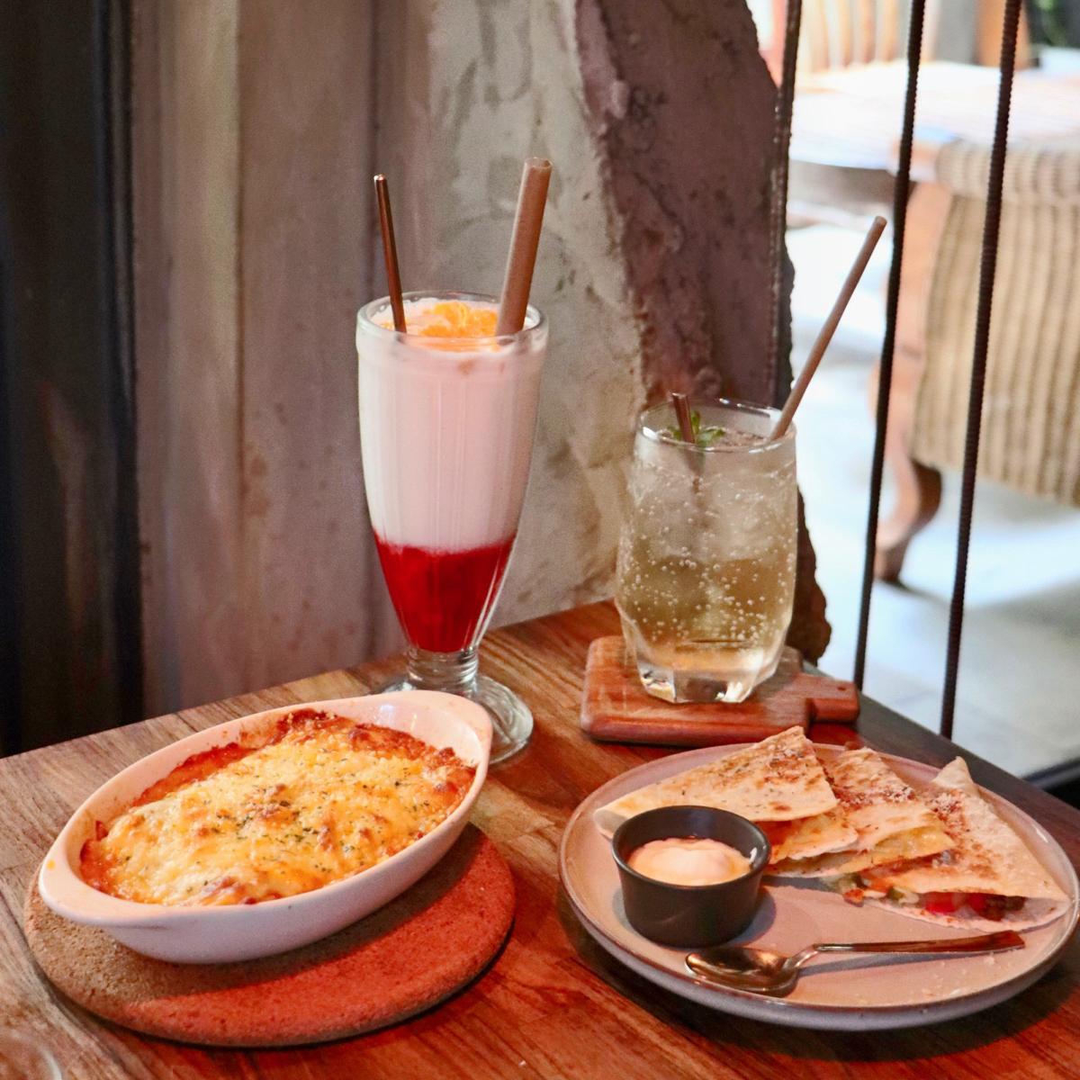 A cafe with both ruins and industrial style. There are many indoor and outdoor seats, so you don’t need to worry about not running out of seats! I think the meals and drinks are delicious, but the portions are not that big🥲. The meal time limit is 4 hours, which is really long and feels very considerate🥰!