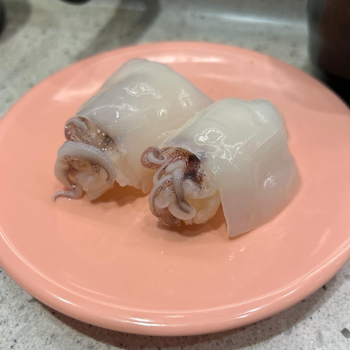 Now there are three pieces of onion and smoked salmon nigiri for $40