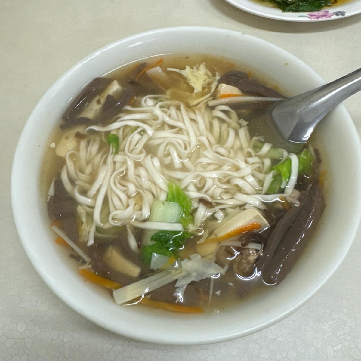 I ordered a bowl of hot and sour noodles with hot vegetables. The soup of hot and sour noodles is clear and sour. I think it tastes good. A bowl is 70 yuan, and a large bowl is 90 yuan. A small plate of blanched vegetables costs 30 yuan, which is a bit not enough.