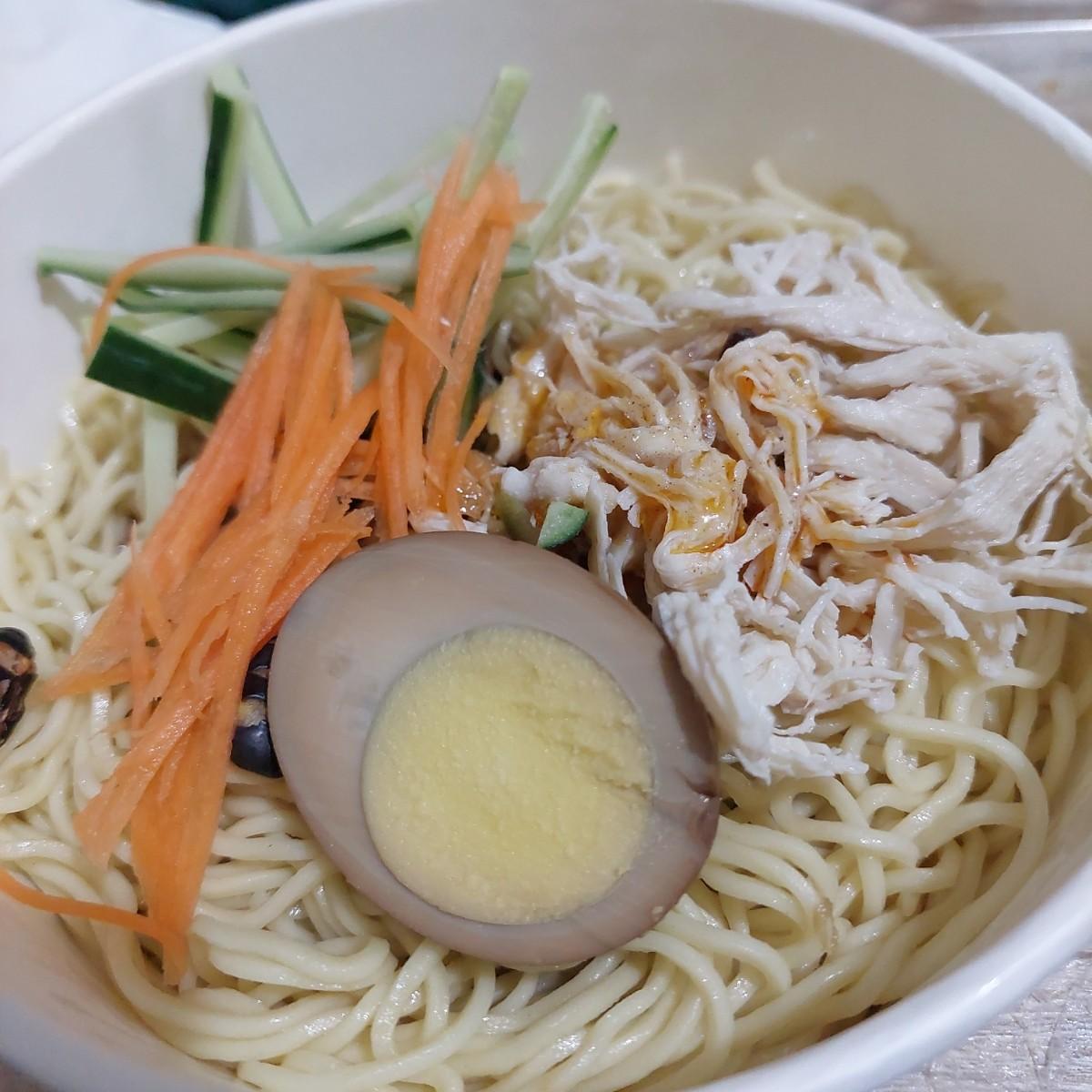 There is a lot of shredded chicken, and the seasoning tastes light on its own, but when combined with the sauce and shredded vegetables, the taste naturally becomes richer.