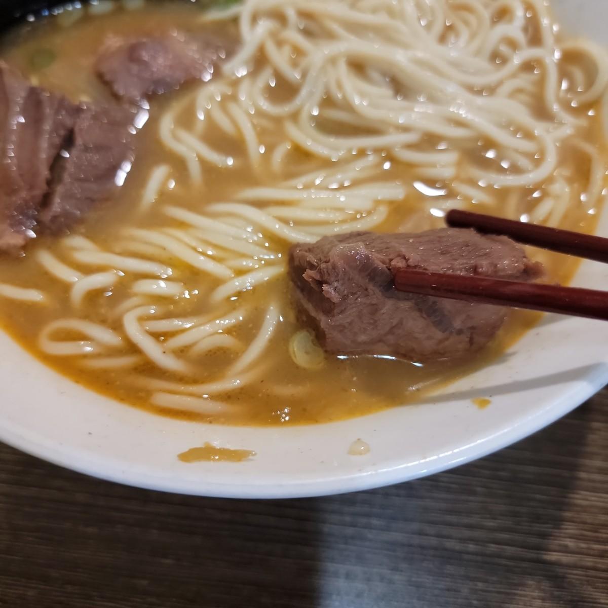 There are four pieces of beef, which is very thick. Sauerkraut is added directly to it. Those who don't like sauerkraut must remember to tell the counter first not to add it. The soup has a strong cumin flavor, which is very tasty but a little salty for me. The noodles themselves are quite generous and not soft in texture. Thanks to the richness of the soup, they completely absorb the soup and are very tasty. The meat is probably one of the thickest beef noodles I have ever eaten. Although it is very thick, it is not difficult to bite. It maintains a texture that is between melt-in-the-mouth and chewy. At the same time, you can enjoy the aroma of beef. It is very delicious.