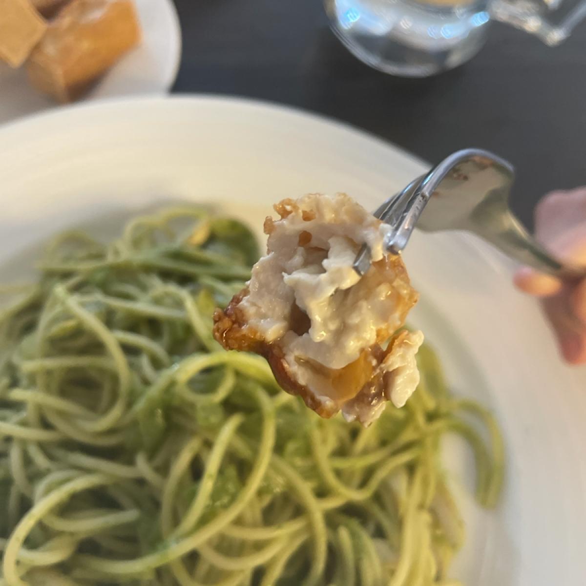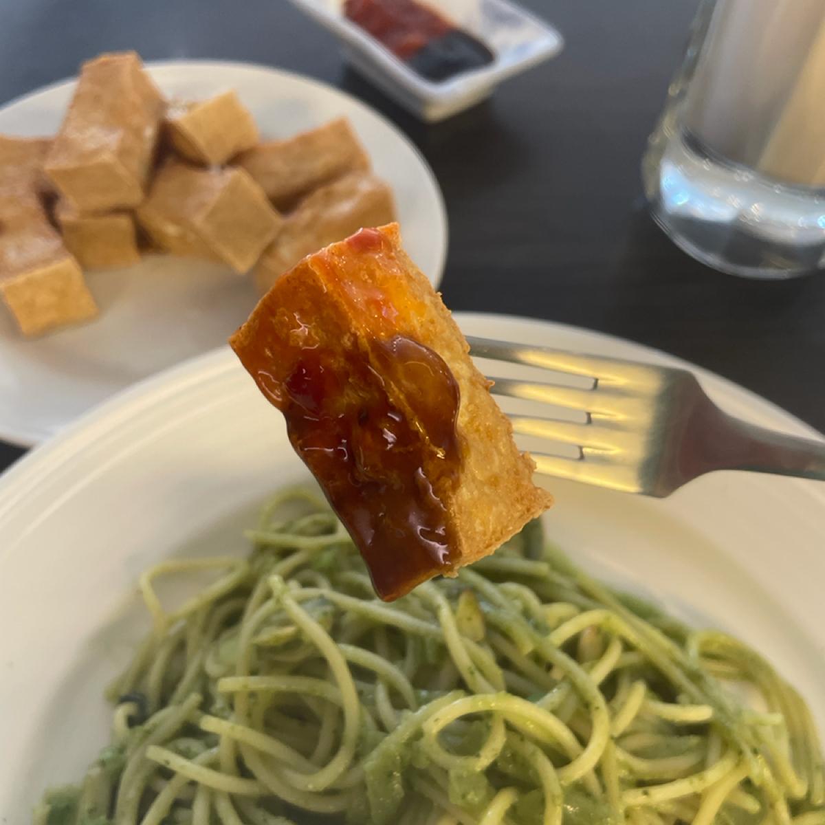 I ordered a pesto clam pasta, fried tofu and Tieguanyin milk tea