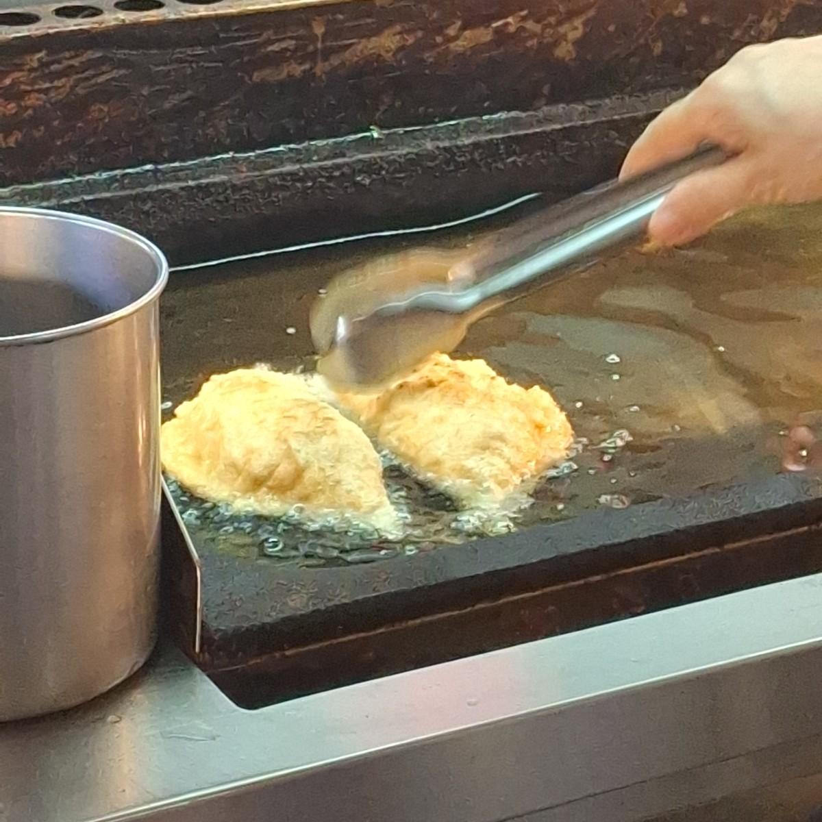 I ordered the all-onion flavor. The onion looked slightly seasoned. It didn’t taste as bland as Google said. The skin was fried very crispy and the seasoning was a bit salty, but it suited my taste.