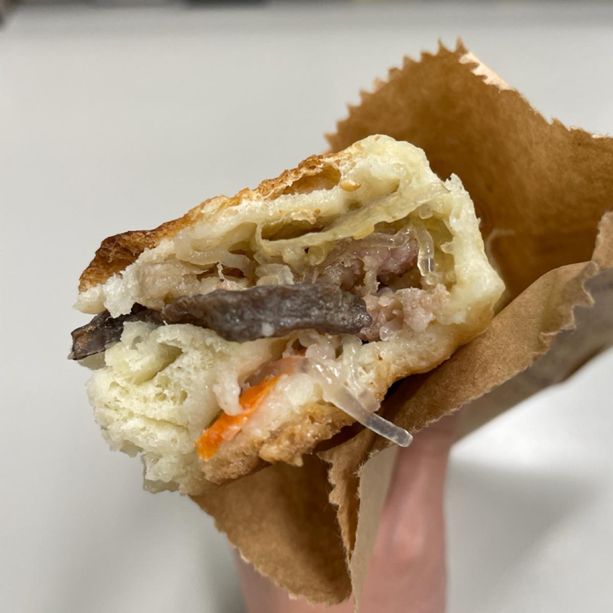 The dough is full of white sesame seeds, which is quite fragrant; the filling tastes like the filling of fried buns or vegetable buns. In addition to onions and meat, there are also winter noodles, fungus, etc.; by the way, The meat is not completely lean, there is some fat in it