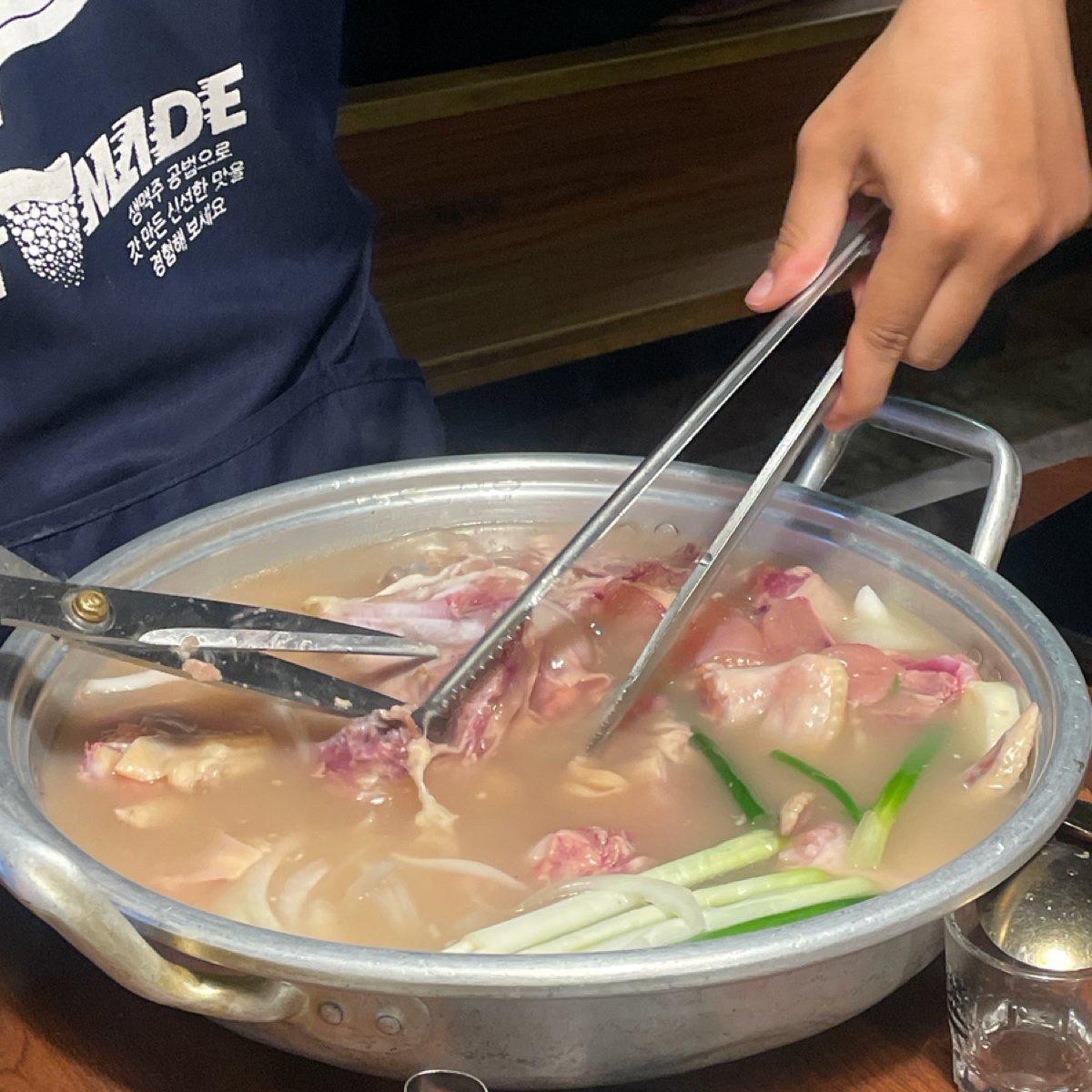 The main meal for four people was a pot of soup (one chicken)