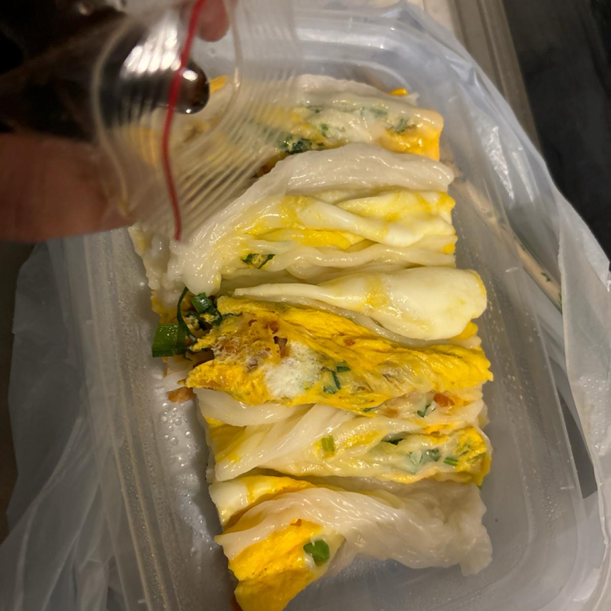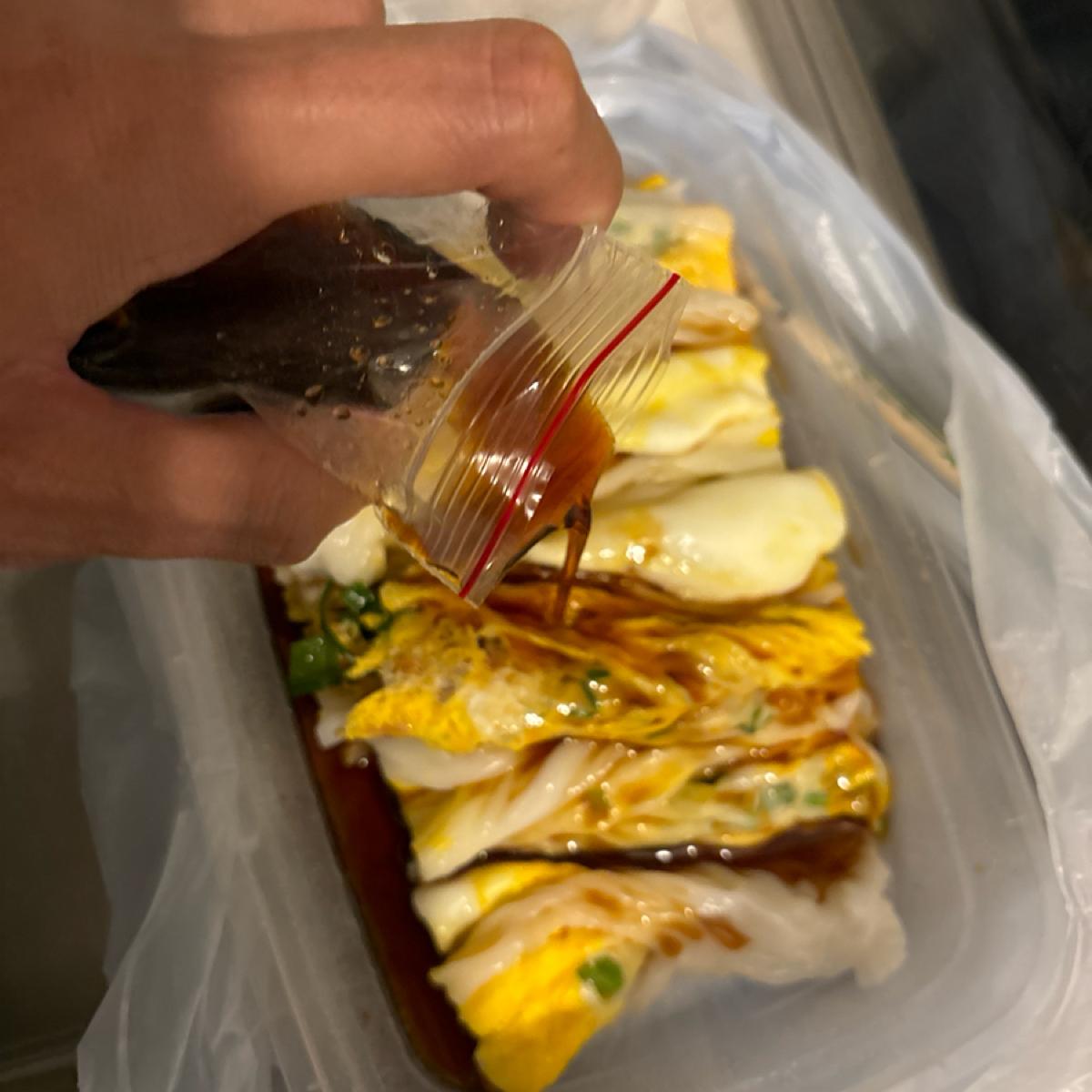 When ordering, the lady boss recommended various dishes to us. She told us that these scrambled egg rice rolls have the best price and best value for money. She knew very well that we were on a tight budget, so she specially selected a few dishes for us that were both good and affordable. We couldn't be more grateful!