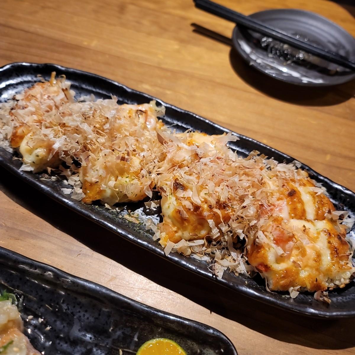 The baked sushi pizza is used to increase satiety. The bottom is made of seaweed and rice, and the grilled cheese and bonito flakes are very fragrant. You can also eat a little shrimp in the middle.