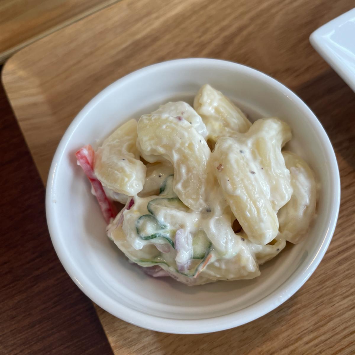 I particularly like one of the side dishes - the macaroni salad, which is macaroni mixed with mayonnaise. It is very satisfying to eat with a heavy-flavored main meal. The soup is a bowl of clear soup, simple but the two of us said it tastes delicious!