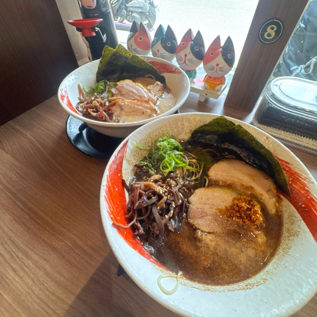 Since we went after the main dining hours, many items were sold out, so we ordered the restaurant's signature rich white soup and the highly recommended Soul Black 😋 All the ramen in the shop can be customized, such as choosing thin or medium noodles, the hardness of the noodles, the richness of the broth, and the types of meat (shoulder or pork belly) 🤩 There's also a seasoning area in the middle of the restaurant where you can get ice water, and the shop has a special vinegar for those who love vinegar to enhance the flavor 😁