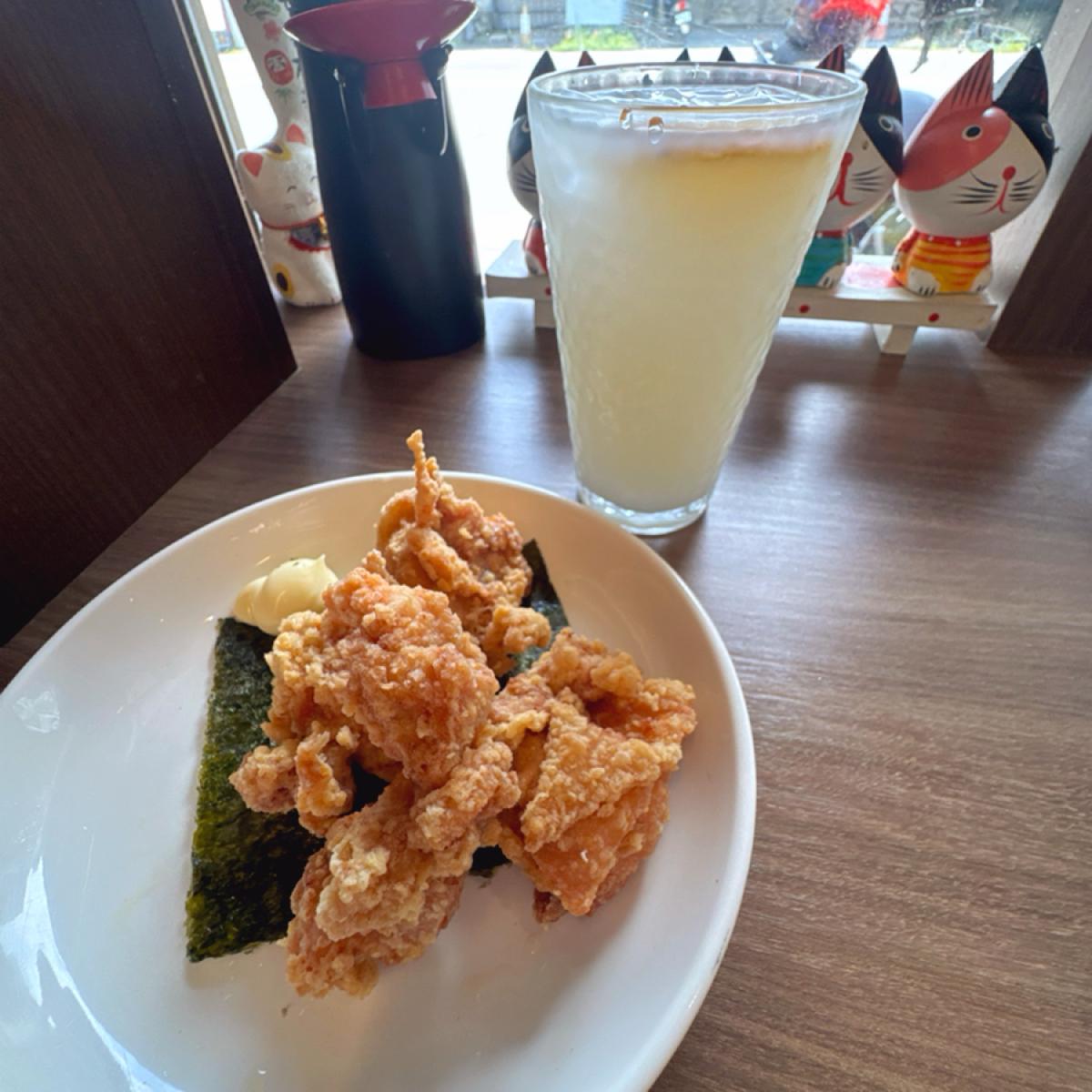 Freshly fried chicken thigh chunks, with skin for extra crispiness. There's a hint of soy sauce flavor, and when you take a bite, the juices burst out, very well fried. 👍